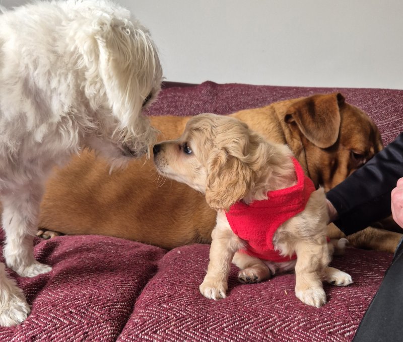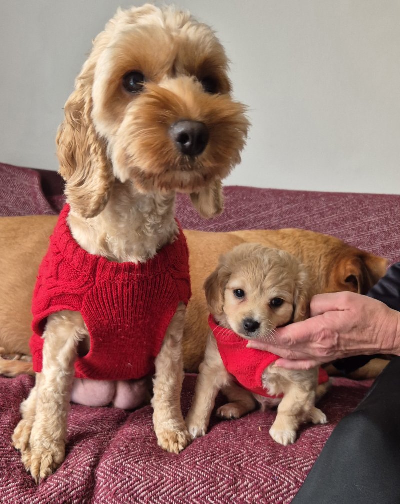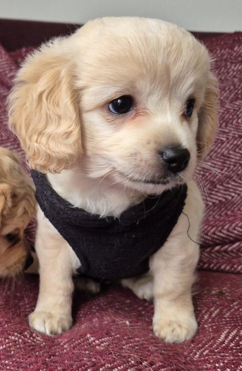 Boy 1, Cedar is an apricot colour like Mum, he is very chilled and doesn't like loud noises. Cedar would make a great companion pet for an older person/couple.