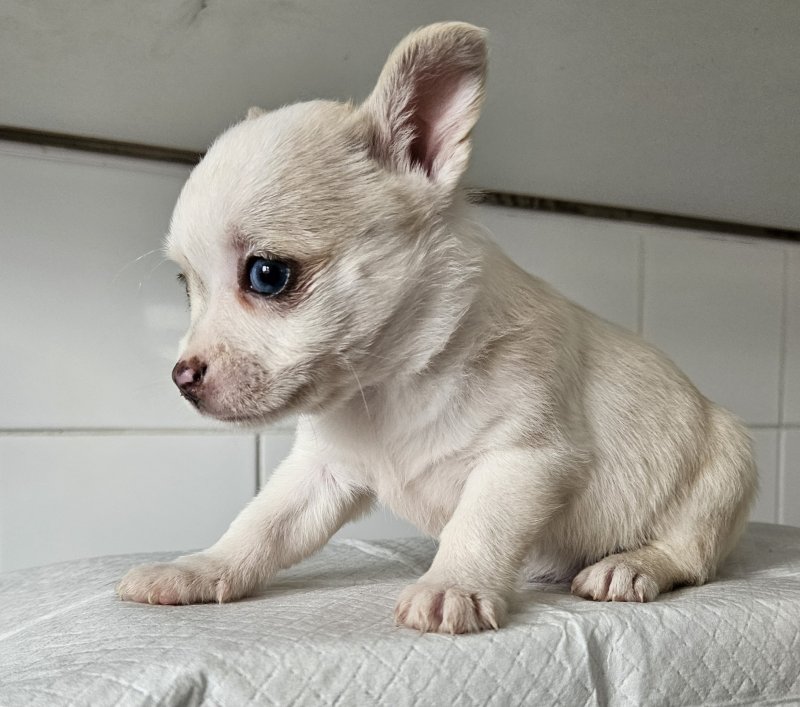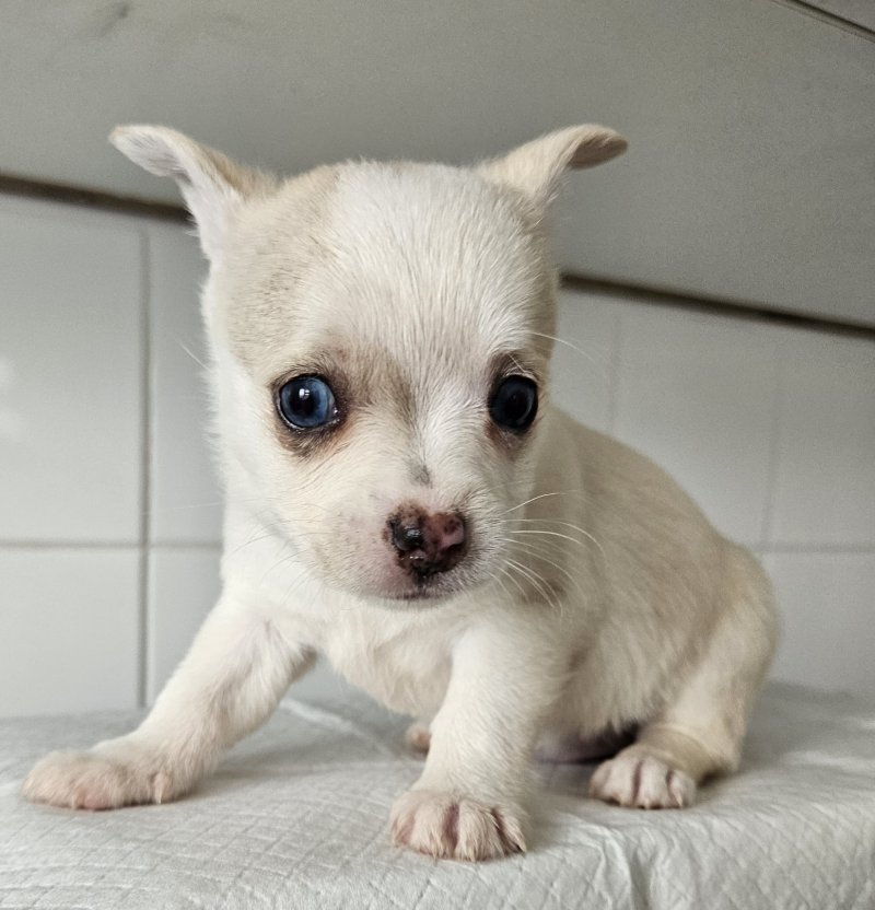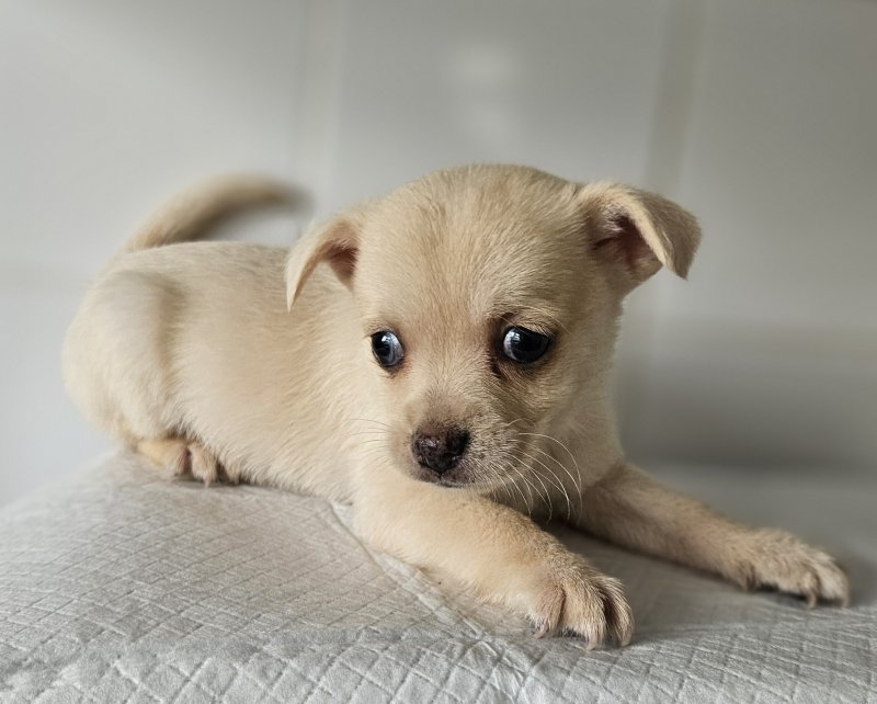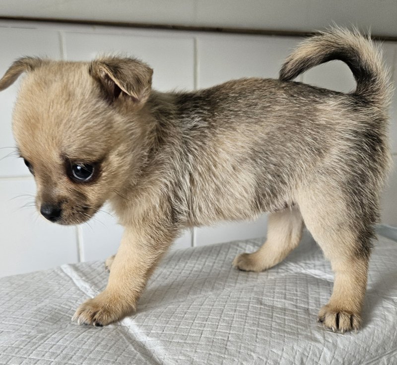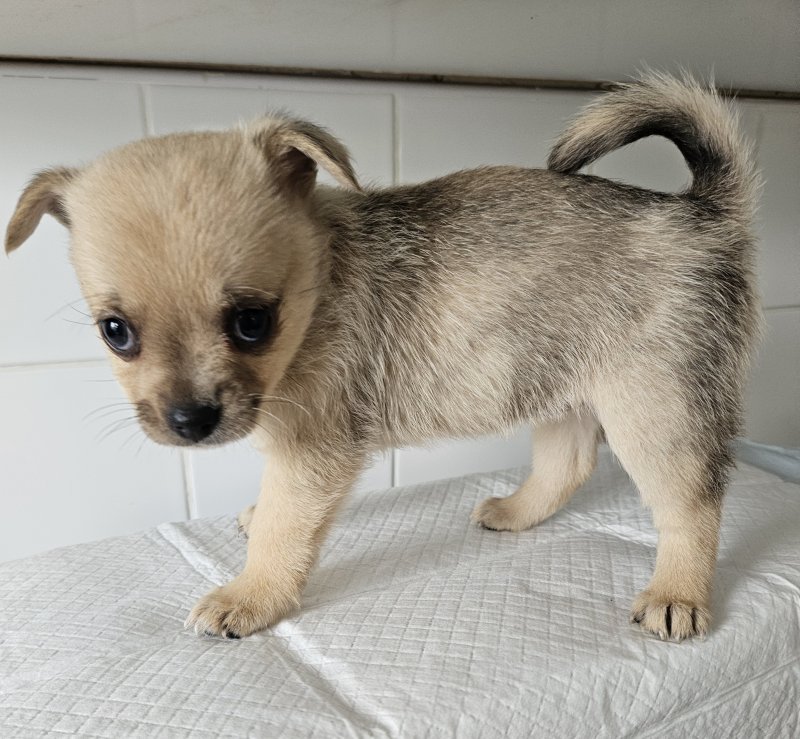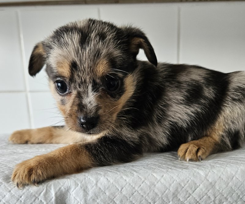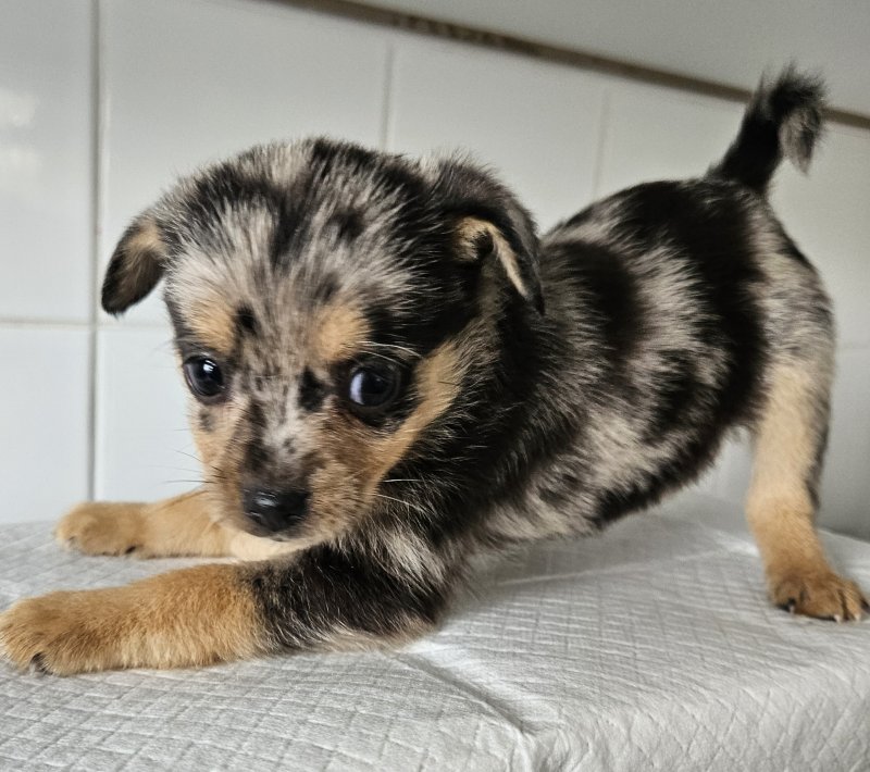 My wonderful little chihuahua has had a litter of 5 Beautiful girls pomchi puppies. Dad is a blue merle pomeranian wonderful colours ready to go on the 22nd of September will be deflead a wormed. Brought up in a family home will make brilliant friends for life. Will only go to a loving home, any questions please ask many thanksGIRL 1 / BLUE MERLE and TAN GIRL 2 / CREAM GIRL 3 / CREAM MERLE GIRL 4 / CREAM AND WHITE GIRL 5 / CREAM MERLE