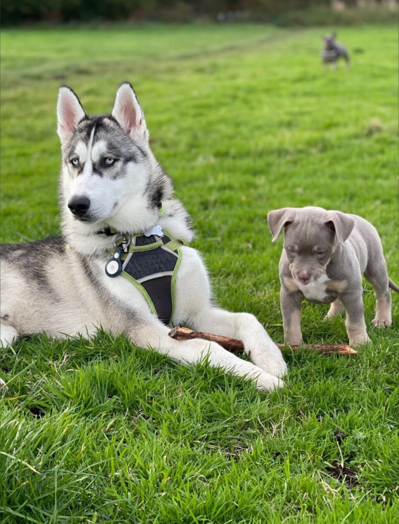 ABKC Registered American Pocket Bully (3yrs) and KC Registered Siberian Husky (3yrs).