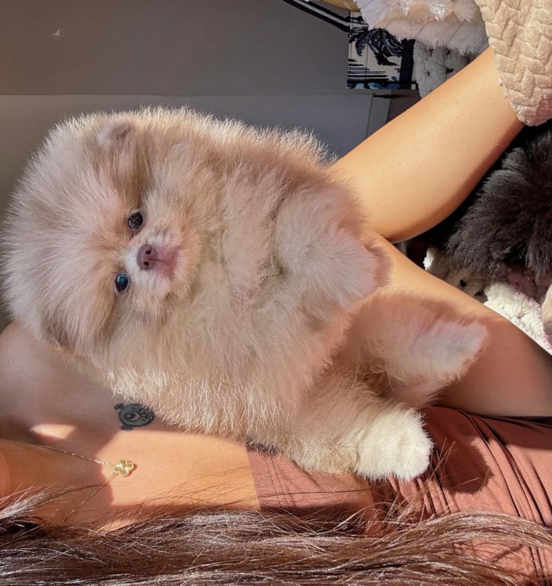 Looking for a truly unique and luxurious companion? Meet Lavinia, a rare Lilac (aka Purple) Merle Pomeranian with a soft, plush coat and the sweetest personality. β¨