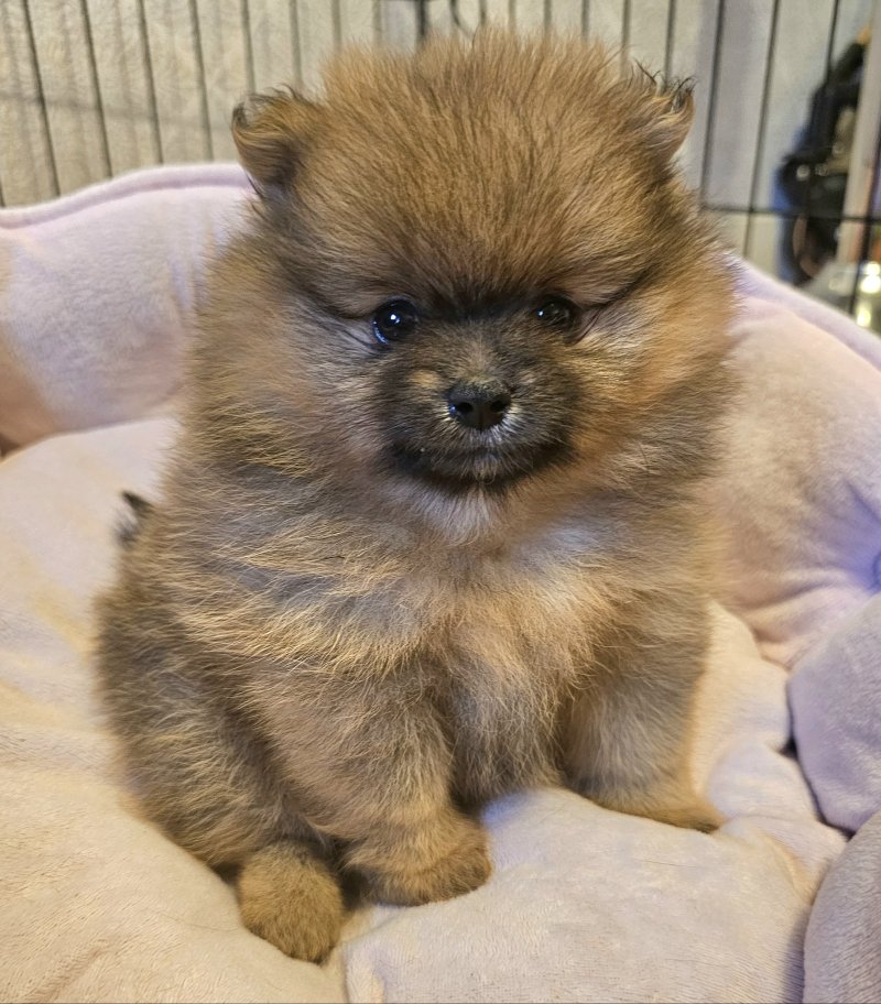 We are delighted to introduce three charming Pomeranian puppies who are soon to be ready to find their forever families. These little ones are 1 month old and have been given the very best start in life. Each has been health-checked by a veterinarian, kept up to date with vaccinations, and lovingly cared for in a family environment.
