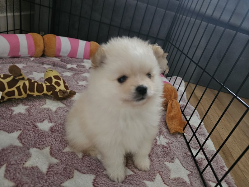 We are delighted to introduce two charming Pomeranian puppies who are soon to be ready to find their forever families. These little ones are 1 month old and have been given the very best start in life. Each has been health-checked by a veterinarian, kept up to date with vaccinations, and lovingly cared for in a family environment.