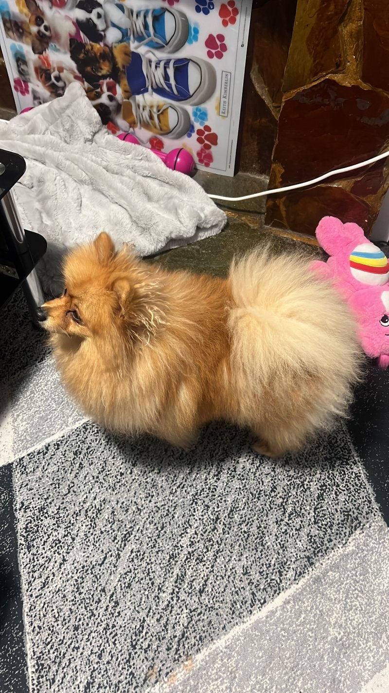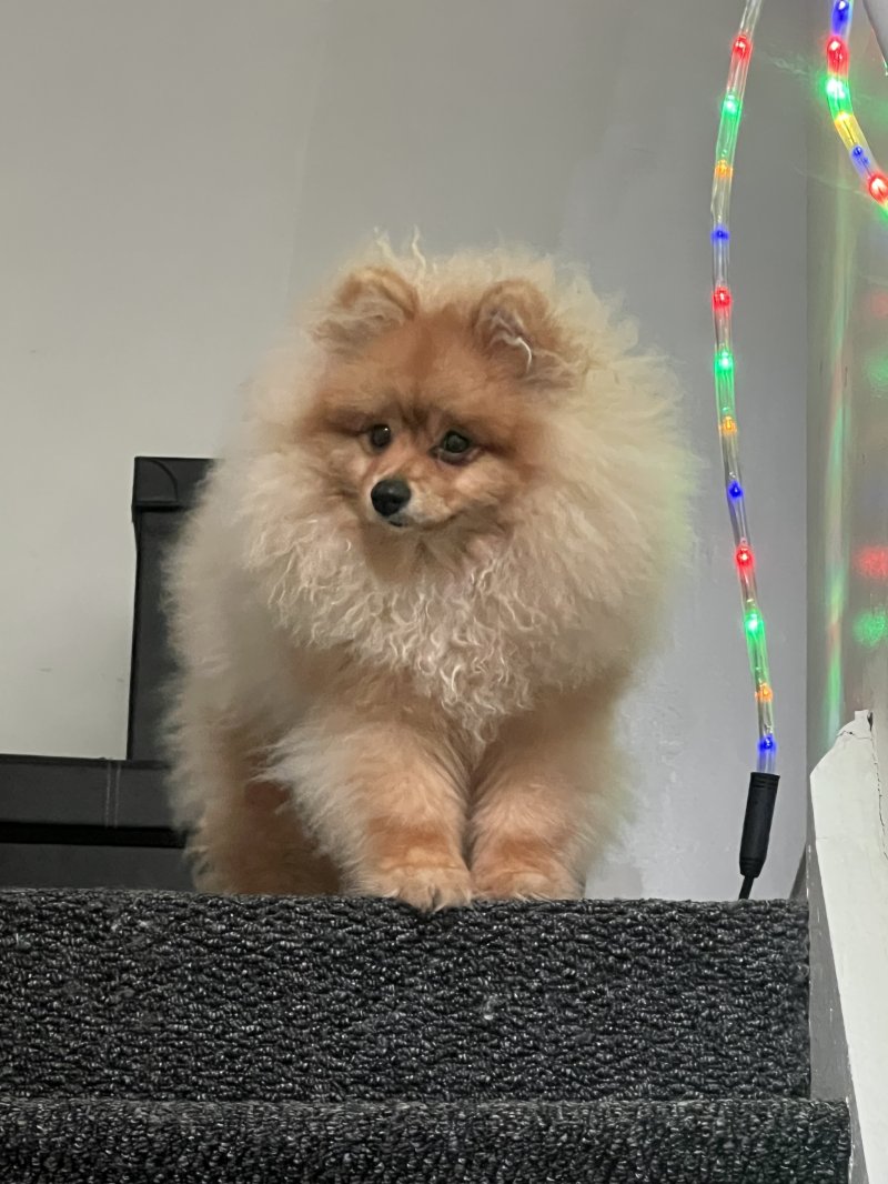“Healthy, purebred Pomeranian with a beautiful fluffy coat and a sweet, playful temperament. Perfect companion and well-behaved.”