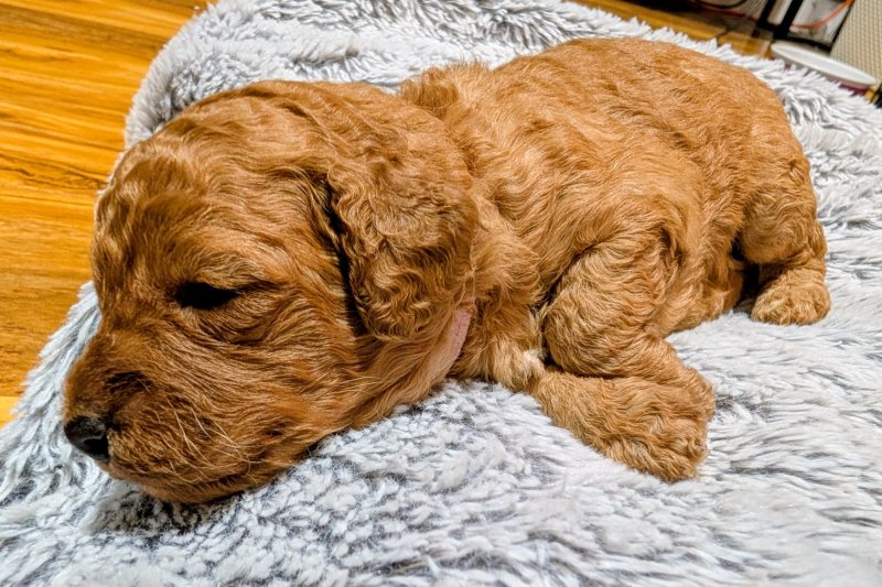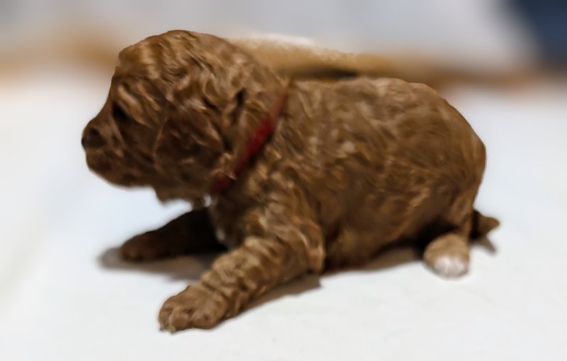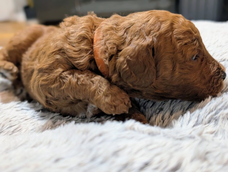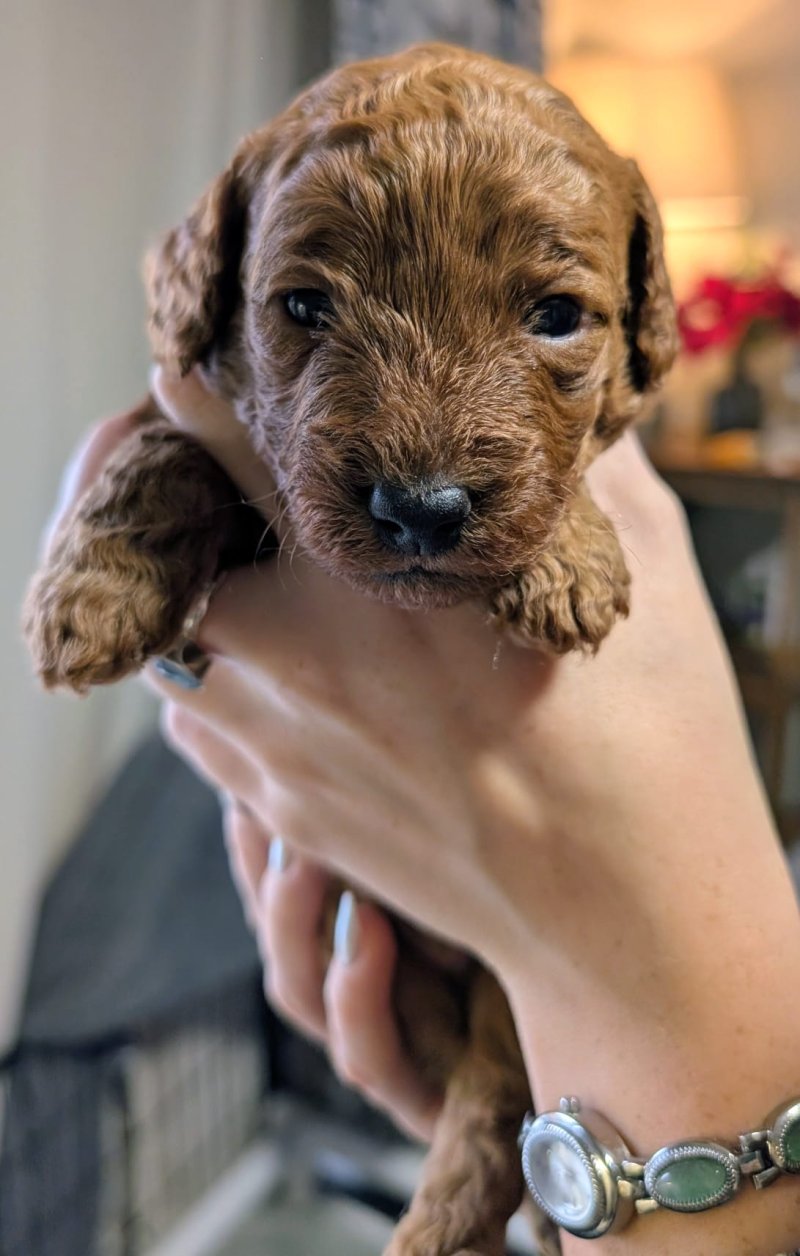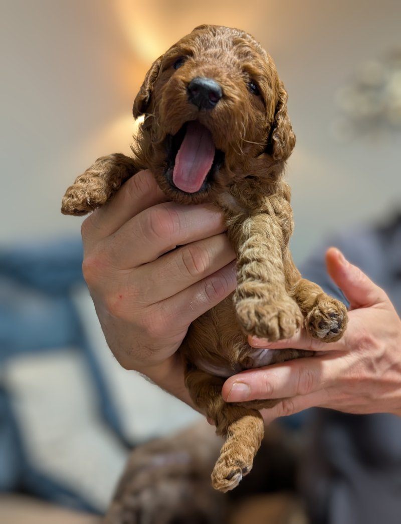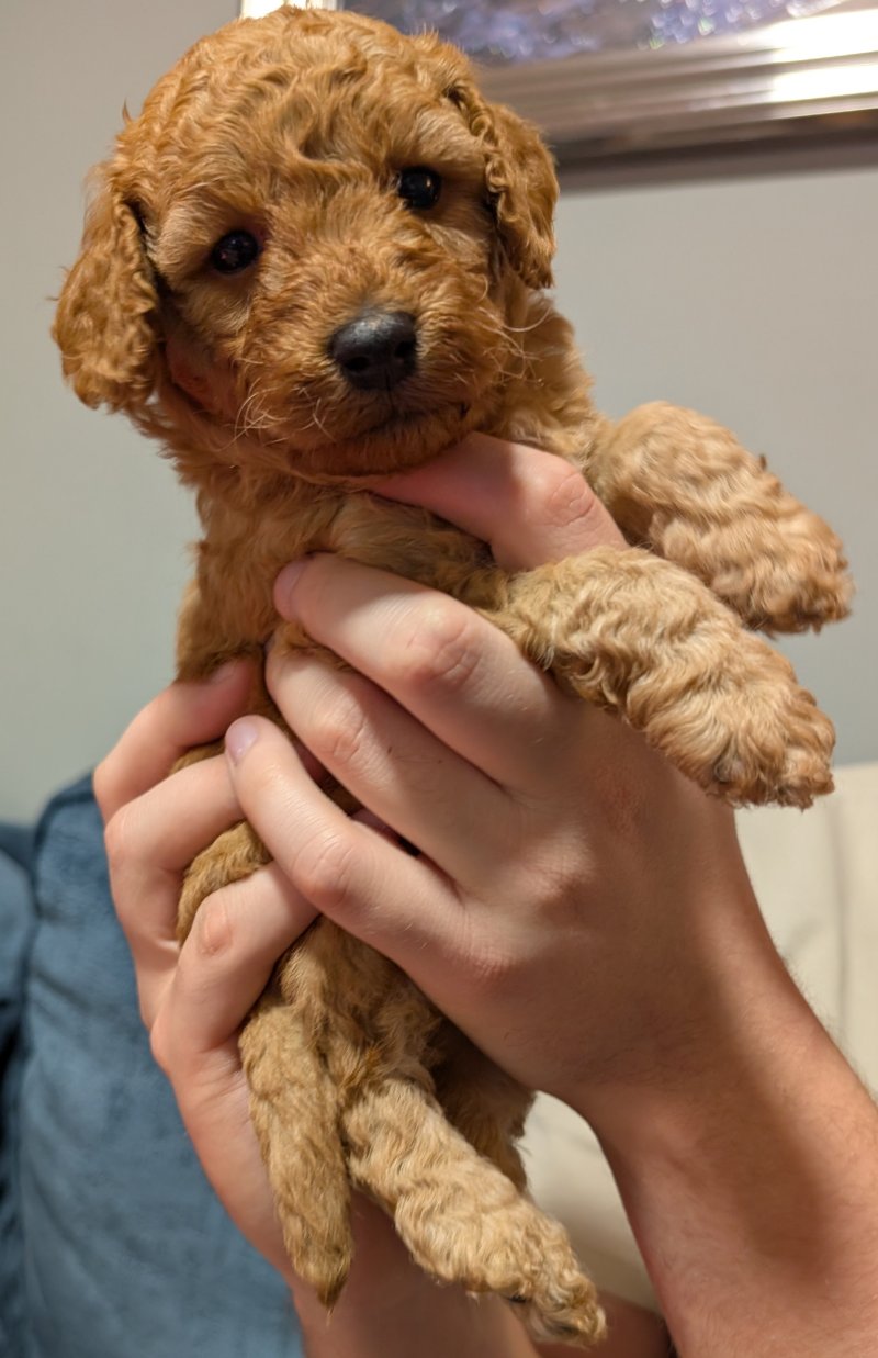 Mum, “Ruby” is our cherished 3-year-old family pet. She is a stunning red block KC miniature poodle with a sweet, funny and loving temperament, and she has taken to motherhood beautifully.