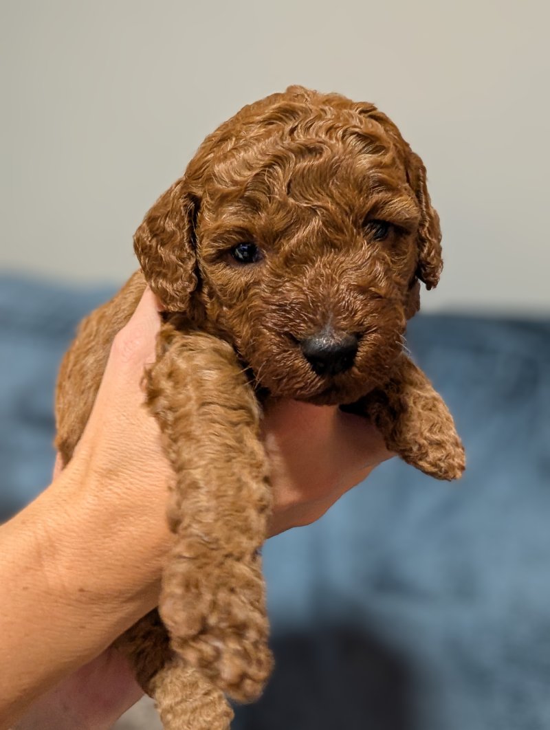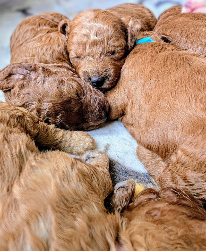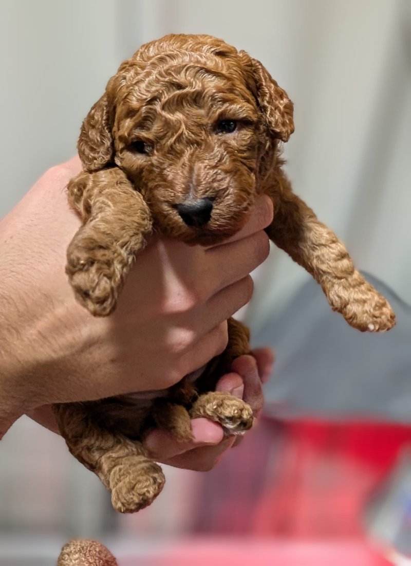 We are thrilled to announce the arrival of a beautiful litter of seven KC Red Miniature Poodle puppies, born on Saturday 30/08/2025.