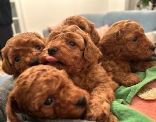 These gorgeous balls of fluff live in our home and are used to other dogs, children, dishwasher, hoover etc. Mum, Winnie is our KC Reg family pet, she is 2 years old. Winnie is a total legend, full of fun and lots of love! She is a wonderful mum, attending to puppies every need. Her COI is below the breed average, she is KC reg and genetically fully health tested. Winnies is being a wonderful doting mummy. She has a temperament second to none. Winnie’s KC Reg Name is: Cassie Bird May