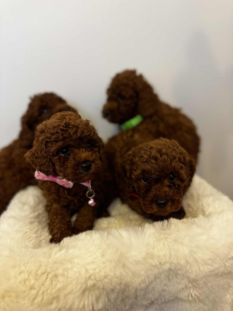 2boys&girls.Mum Coco Issa Kc registered lovely sweet toy poodle as shown on the picture.Dad is a deep red toy poodle. .Puppies are receiving the best possible start to life played with they’re outgoing and friendly. Excellent temperaments and well socialised around children.The puppies will leave with first vaccination µchipped and wormed too.Any questions please feel free to contact me