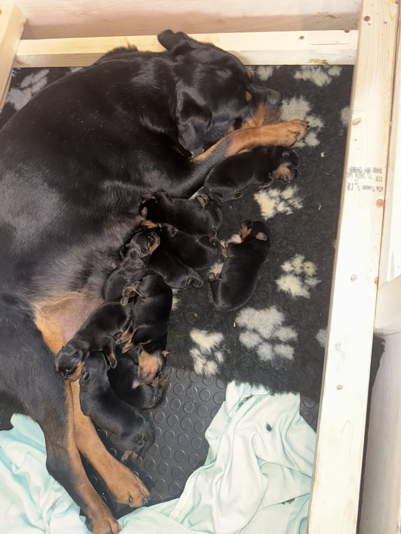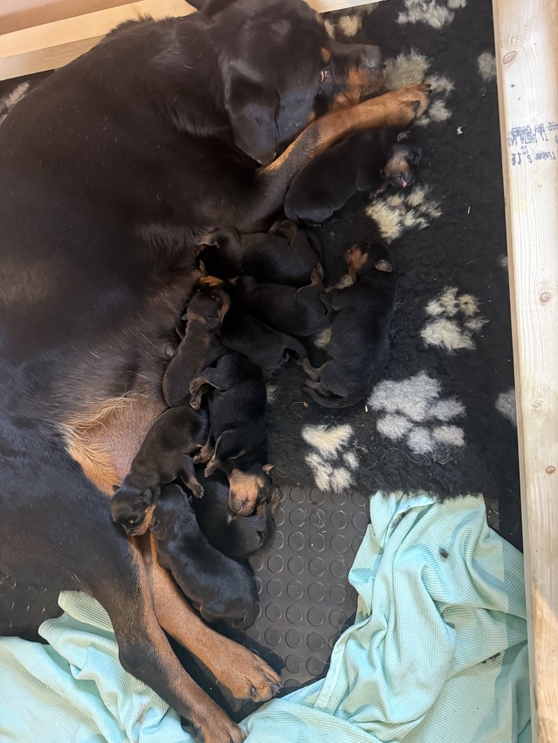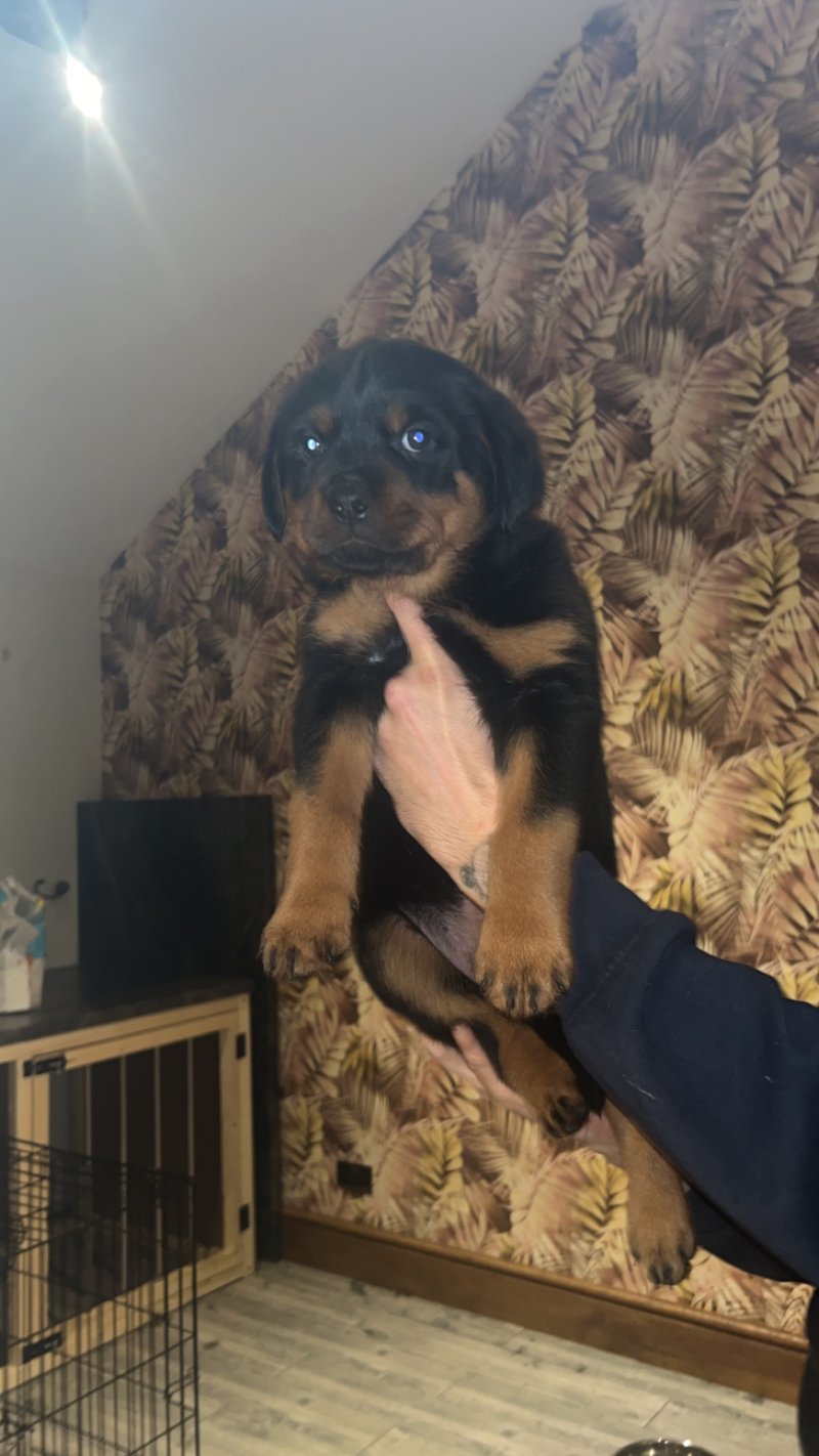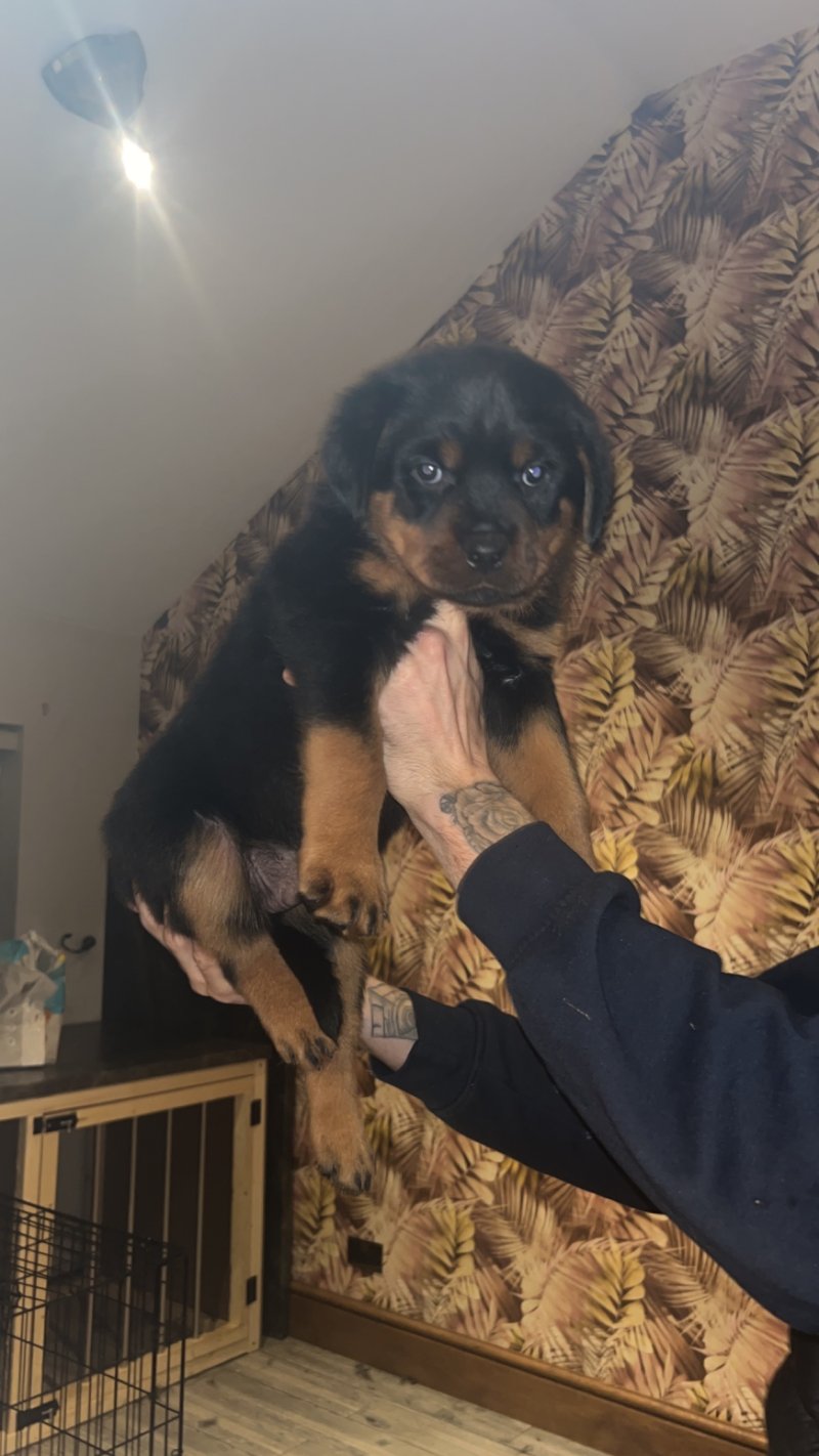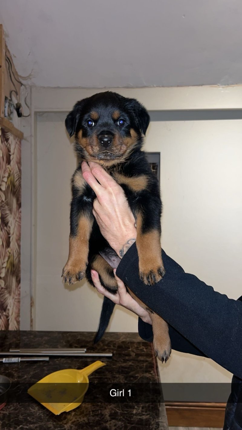 Taking deposits for the litter of pups that arrived today 5/10/2025 mum is from a long line of German champions with 18 champions in her 5 generation pedigree papers, I will also send over proof of mums hip and elbow scores which are outstanding for a female that has been bred at the correct age not at 12 months old, dad is son of the world famous TK’s New Yorker these pups are up there with the best produced rottweillers in the uk I have attached a couple of photos of a couple of the pups from the last litter at 5 weeks old also a photo of the mum, mum can be seen with the pups when coming to view, all pups will come with pedigree papers a puppy pack flead wormed and microchipped I can also provide reviews from previous people who have bought from us as people have come from all over the uk to buy a pup from us.