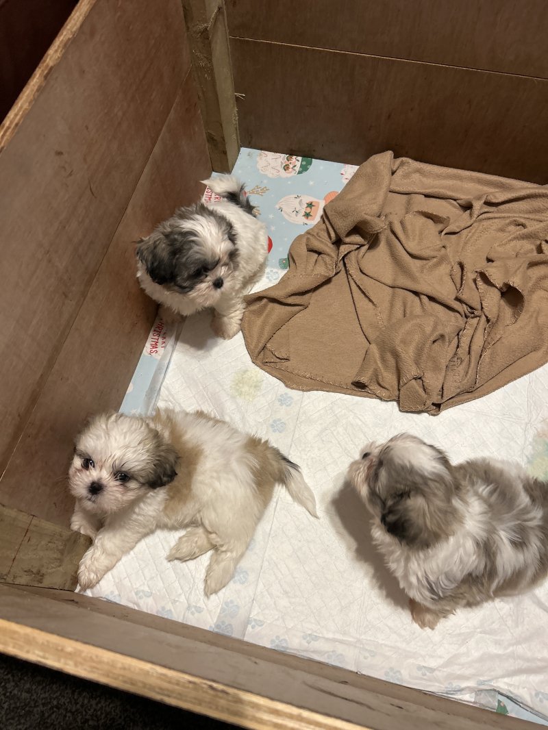 3 beautiful boys, very playful, well handled being around other dogs and people 1 apricot and white,1 light brown and white and 1 black and white, mum can be seen