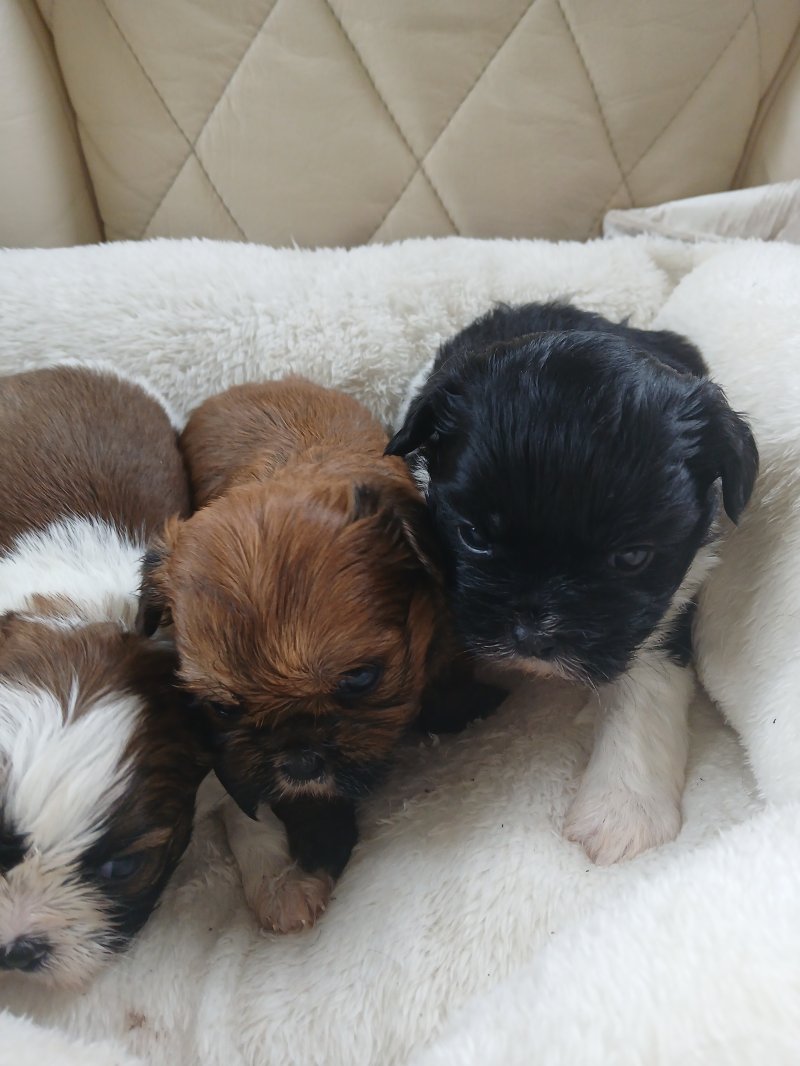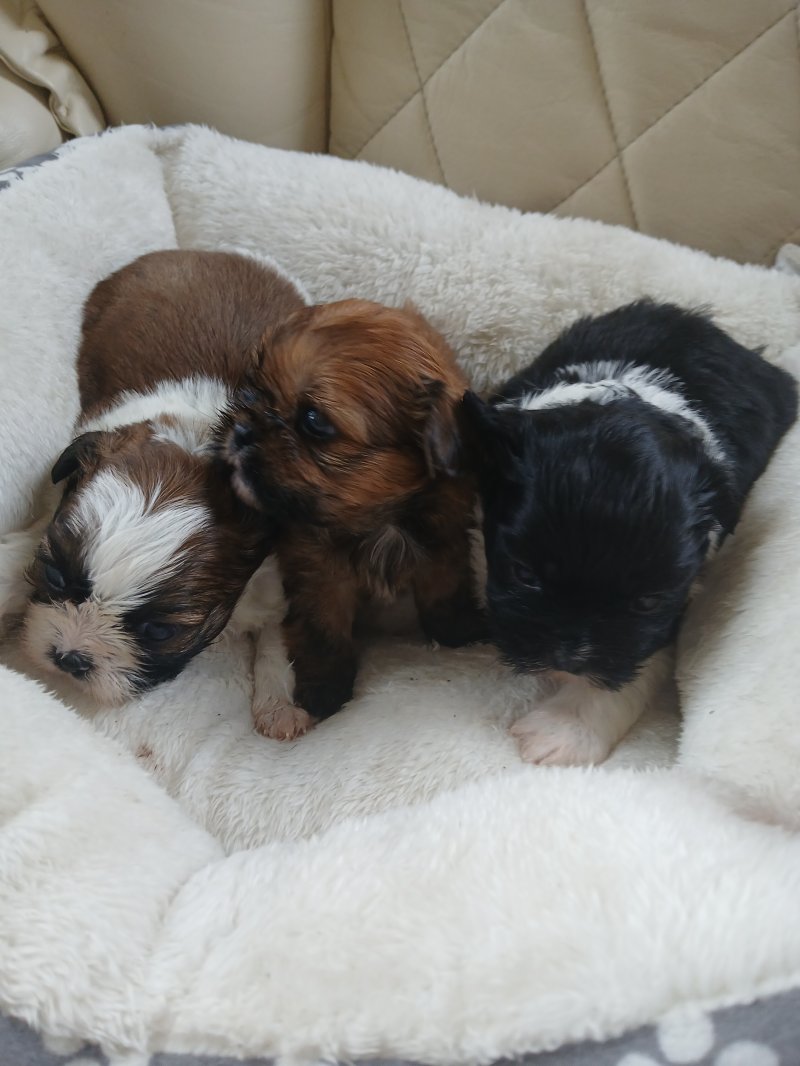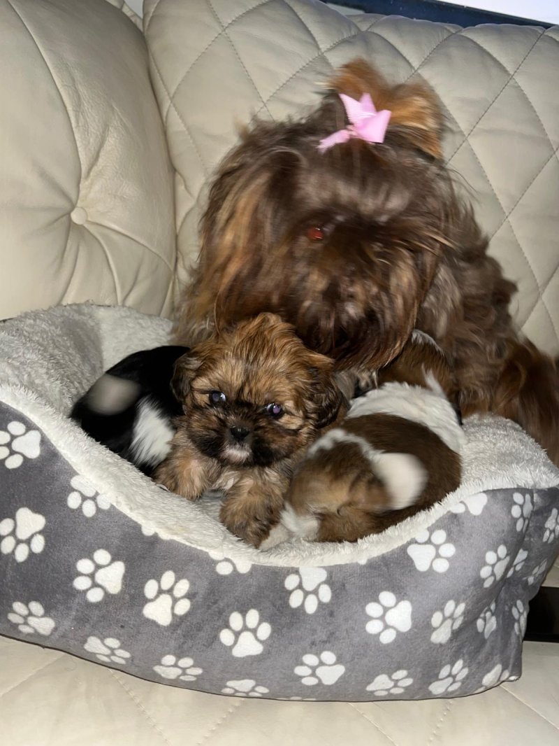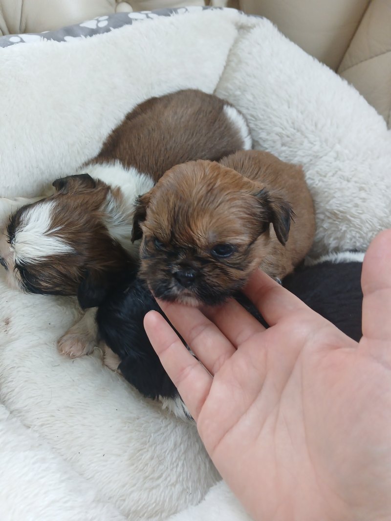 Our gorgeous imperial shih tzu lou lous first litter of gorgeous puppies we have 1 beautiful brown girl and 2 gorgeous boys 1 black and white and 1 brown and white they are 7 weeks old and will be ready near christmas we are taking deposits and they will be vet checked micropchipped and vaccinated before leaving girl is 1000 and boys 900 can be seen with mum and have photos of dad viewings welcome