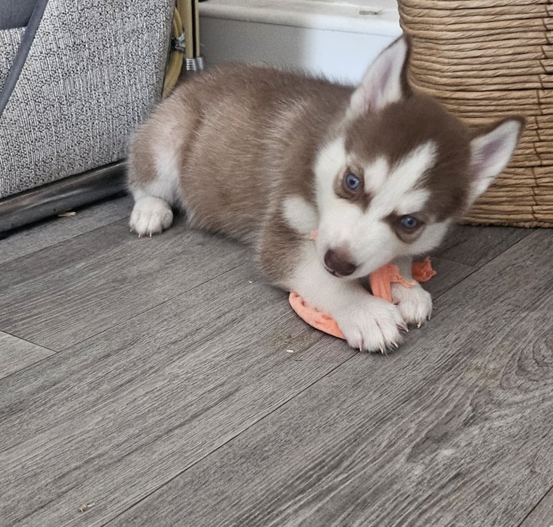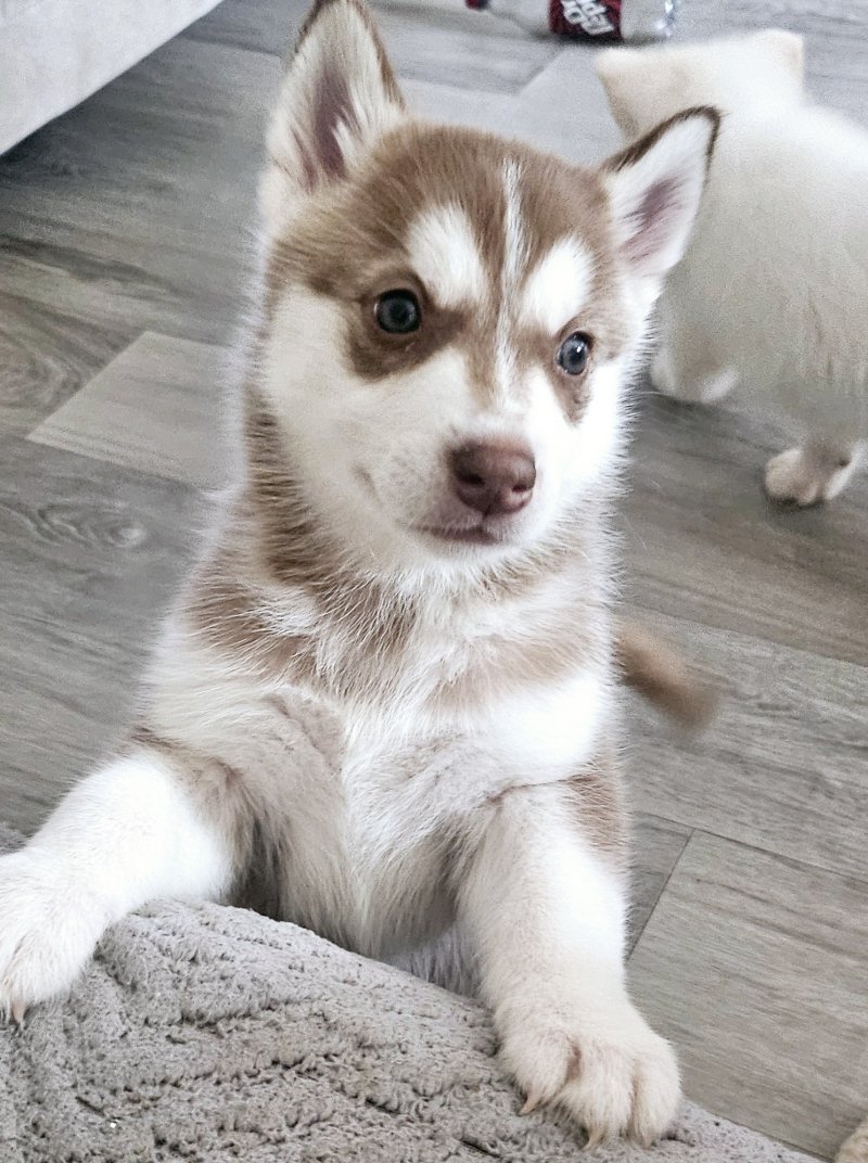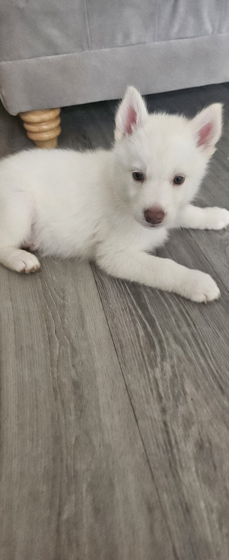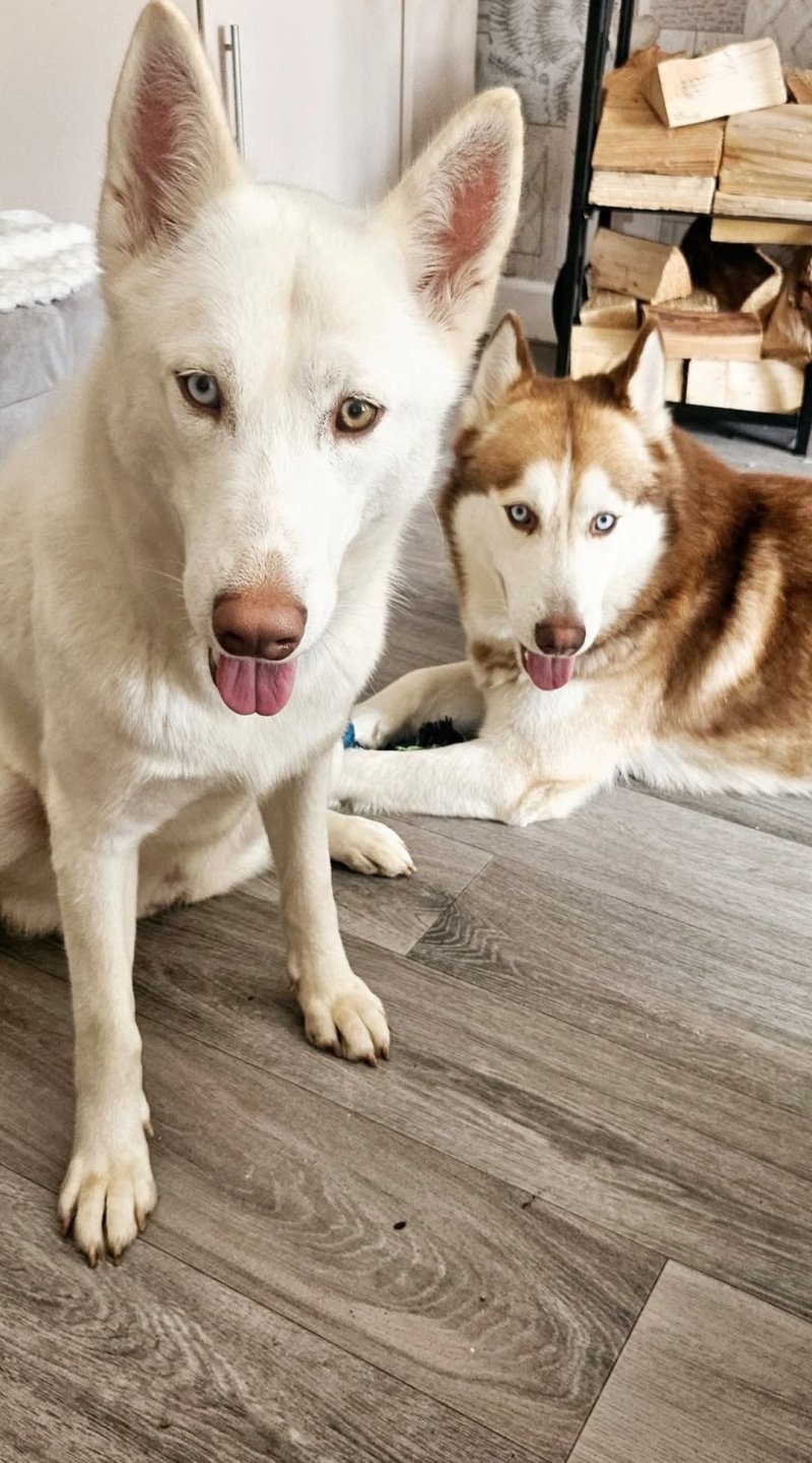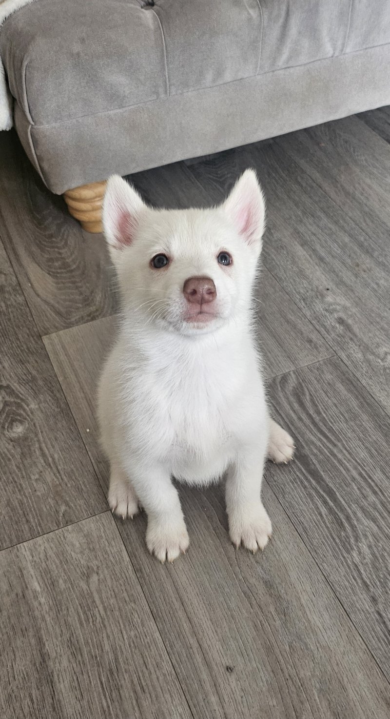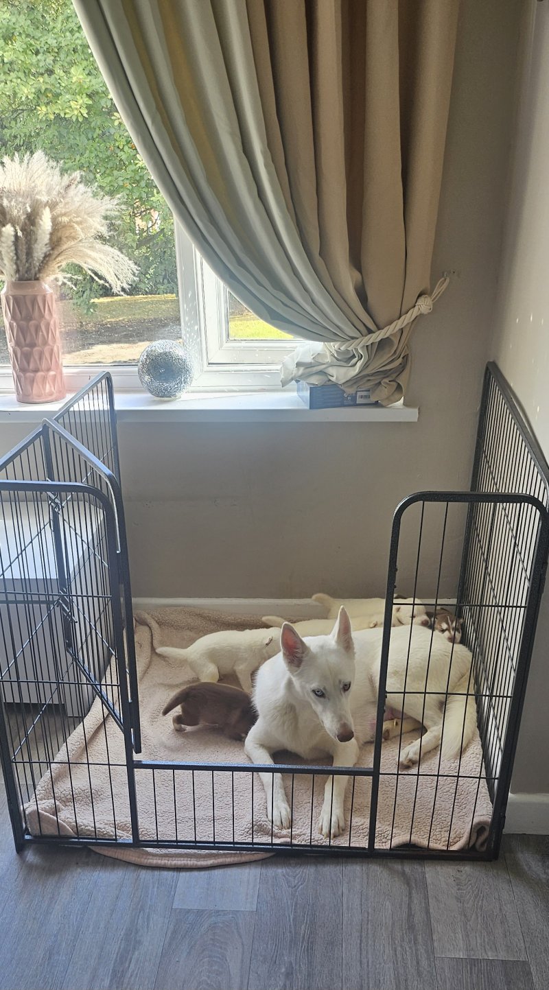 beautiful Girl luna,s six healthy puppies.Mom is pure white siberian Husky and Dad is a brown/white siberian Husky .Both puppy parents can be seen with the litter as they are our family pets who both have lovely temprements. Pups are well socialised and used to be handled on a daily basis .pups will also have a comfort blanket with moms scent on to help them settle into their new home environment. Before leaving for their forever homes puppies will have been identification chipped,vet health checked, 1st inoculations,flea and worm treatment. £250 deposit.5*Homes please🙂Ready to leave . Any questions please ask . selling at £700 per pup thanks for reading.