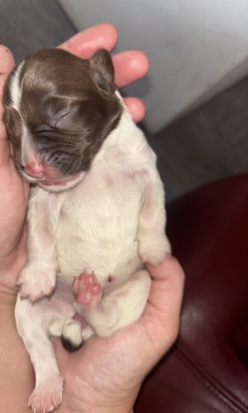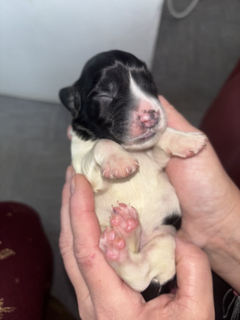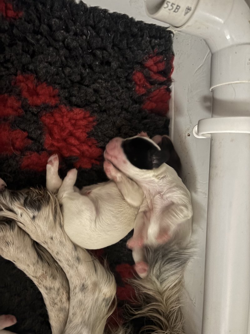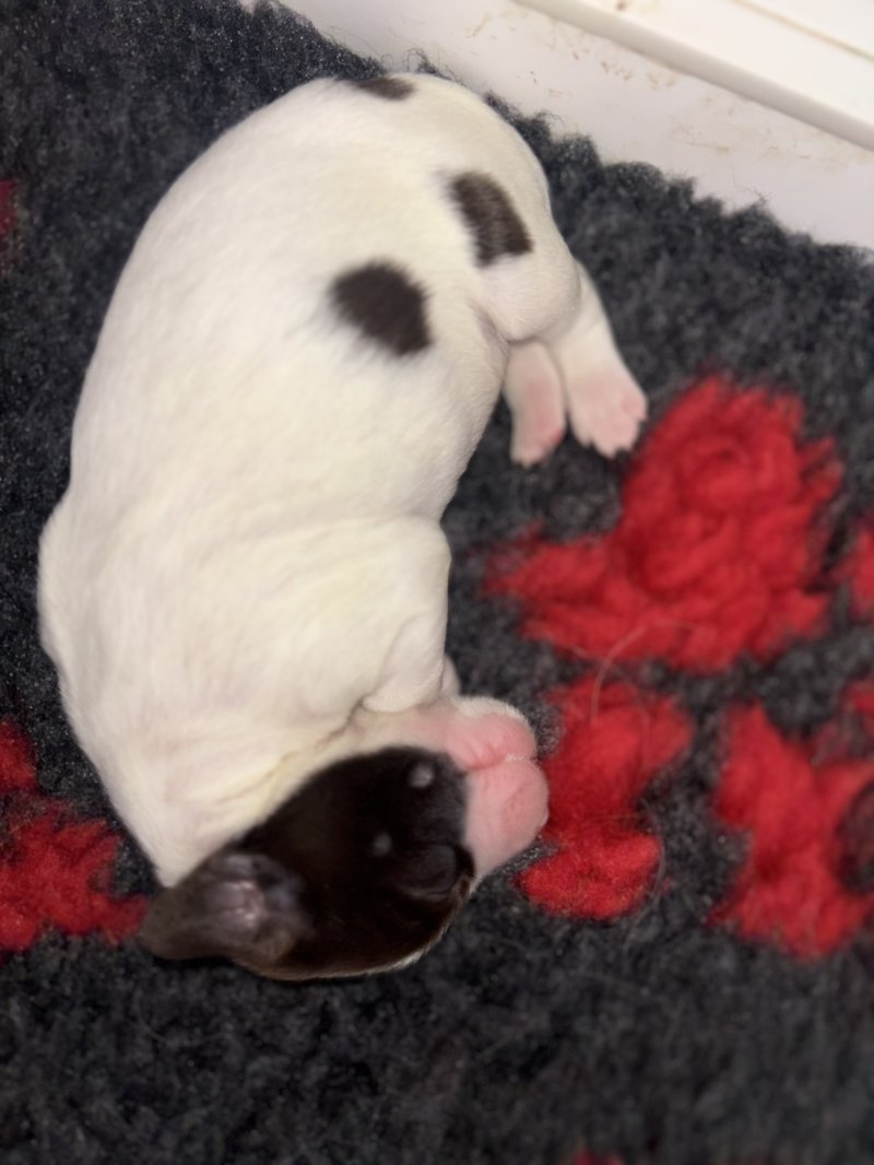 Queenie has given birth to 8 chunky beautiful puppies, 3 gorgeous black and white boys and 3 liver and white boys left , puppies will recall to whistle and stop to whistle and retrieve to hand by 8 weeks this I believe is a solid foundation of a lifetime of good habits on which to be built on , just as I have always done with my own puppies . Puppies will also be crate clean for 7 hours of a night by the time they leave for their forever homes at 8 weeks , just like my previous litters which can be seen on my instagram page foxyflorenca Gun dogs from previous litters and you can also see all my work with mum Queenie and my 3 other gun dogs , I am also documenting this gorgeous litter from birth to 8 weeks . Mum Queenie has been placed in 5 working tests and is a fantastic working gun dog on several shoots . Sire to the puppies is Ftch Ddraighelwyr Blaidd and top dog at 2023 championships. Both Dam and Sire have had the relevant health checks , puppies have been legally docked . Puppies will come with 5 weeks free KC insurance , puppy pack including blanket , whistle , dummy , ball , pack of field trial kibble . I am truly passionate about my litters and the work that goes into them From the mating up until they leave at 8 weeks old .