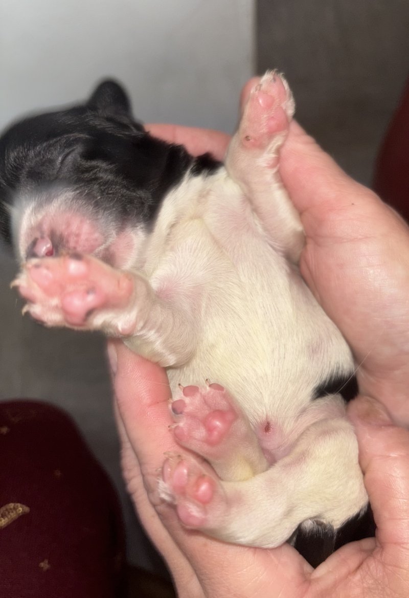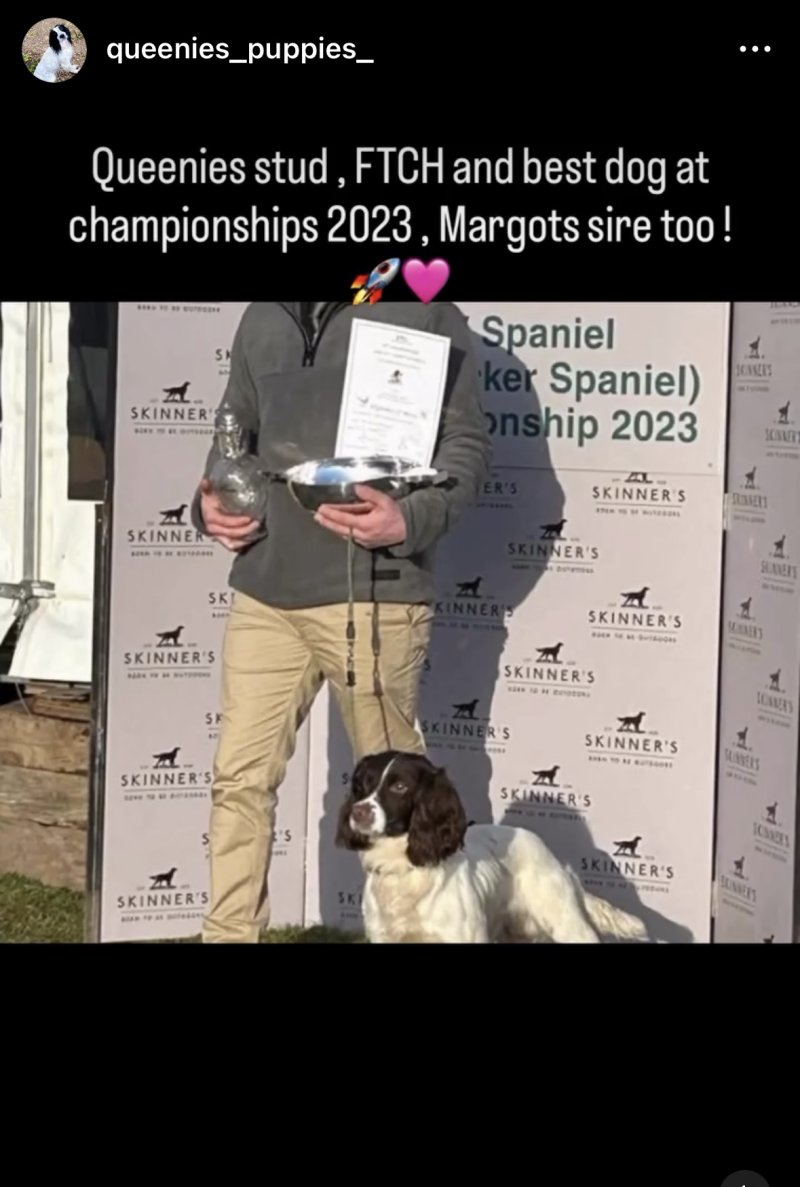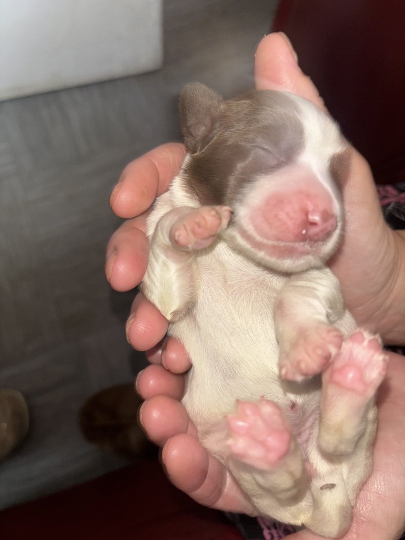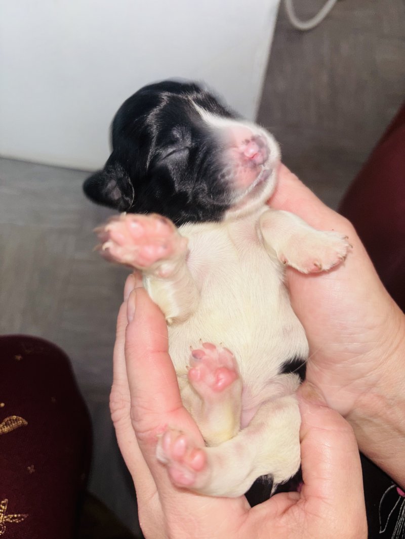 Queenie has given birth to 8 chunky beautiful puppies, 3 gorgeous black and white boys and 3 liver and white boys left , puppies will recall to whistle and stop to whistle and retrieve to hand by 8 weeks this I believe is a solid foundation of a lifetime of good habits on which to be built on , just as I have always done with my own puppies . Puppies will also be crate clean for 7 hours of a night by the time they leave for their forever homes at 8 weeks , just like my previous litters which can be seen on my instagram page foxyflorenca Gun dogs from previous litters and you can also see all my work with mum Queenie and my 3 other gun dogs , I am also documenting this gorgeous litter from birth to 8 weeks . Mum Queenie has been placed in 5 working tests and is a fantastic working gun dog on several shoots . Sire to the puppies is Ftch Ddraighelwyr Blaidd and top dog at 2023 championships. Both Dam and Sire have had the relevant health checks , puppies have been legally docked . Puppies will come with 5 weeks free KC insurance , puppy pack including blanket , whistle , dummy , ball , pack of field trial kibble . I am truly passionate about my litters and the work that goes into them From the mating up until they leave at 8 weeks old .