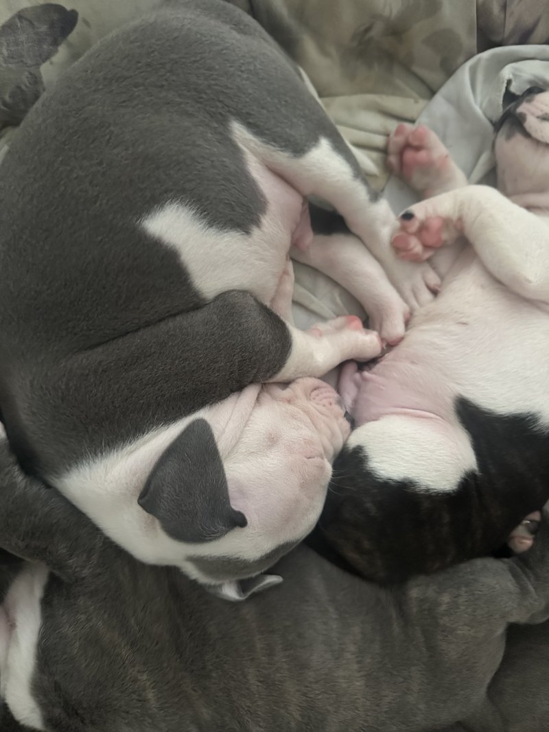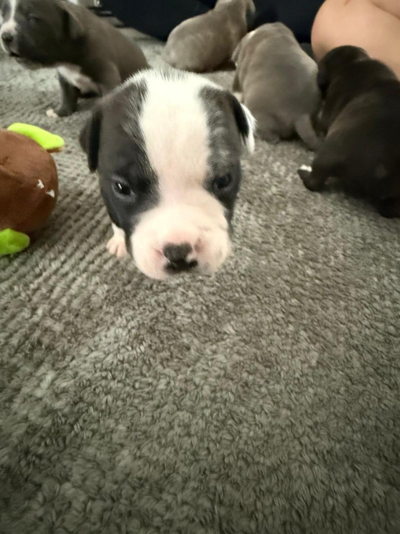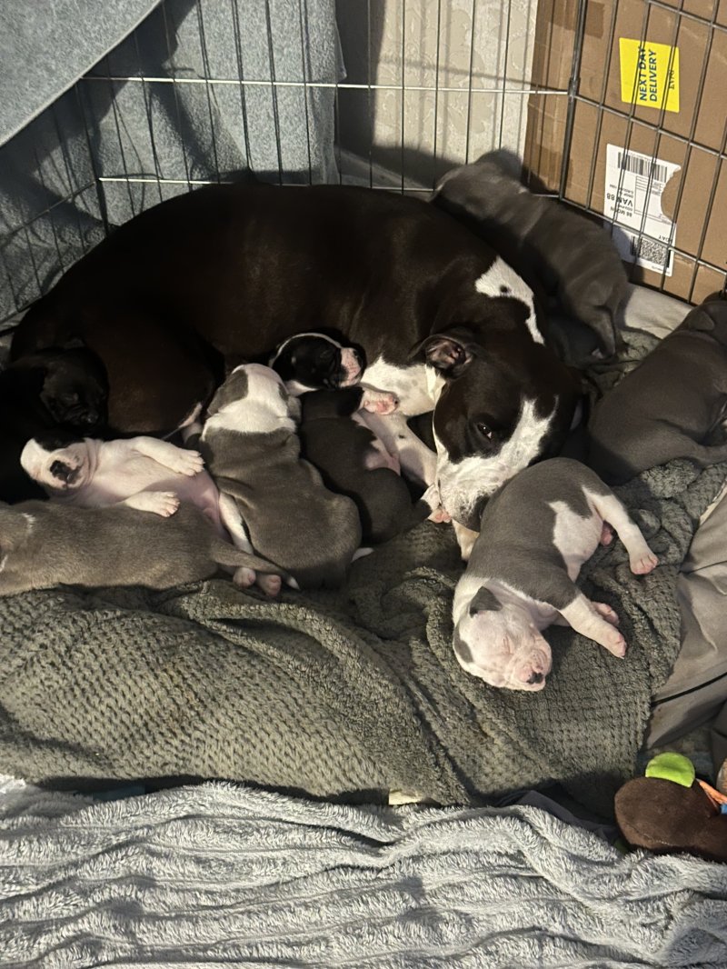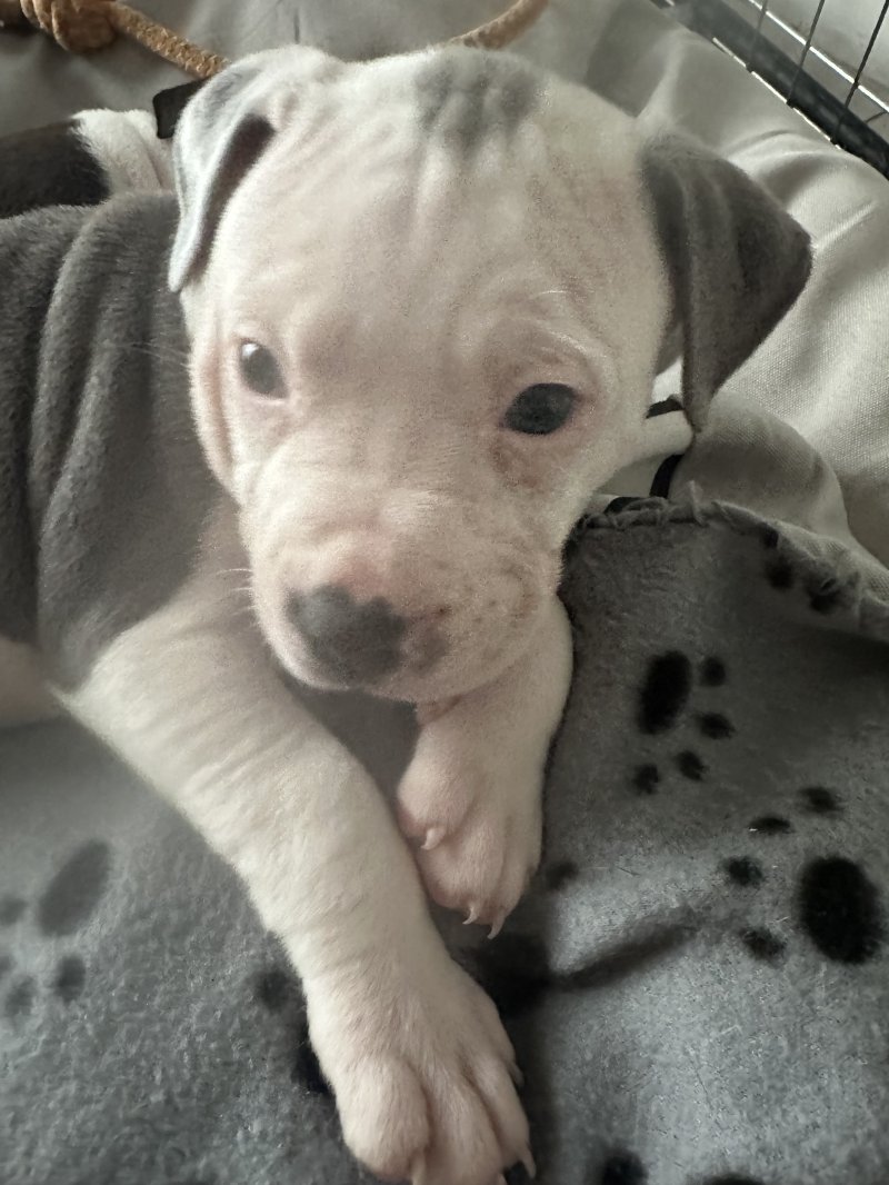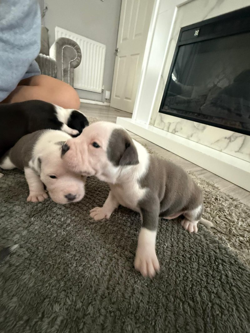 Totally a Beautfuil litter of puppies first litter from a brilliant mum and dad both 5 years old all pups are chunky handle and are truly beautiful with bright blue eyes the litter is mixed if blue/ white blue black and brown white