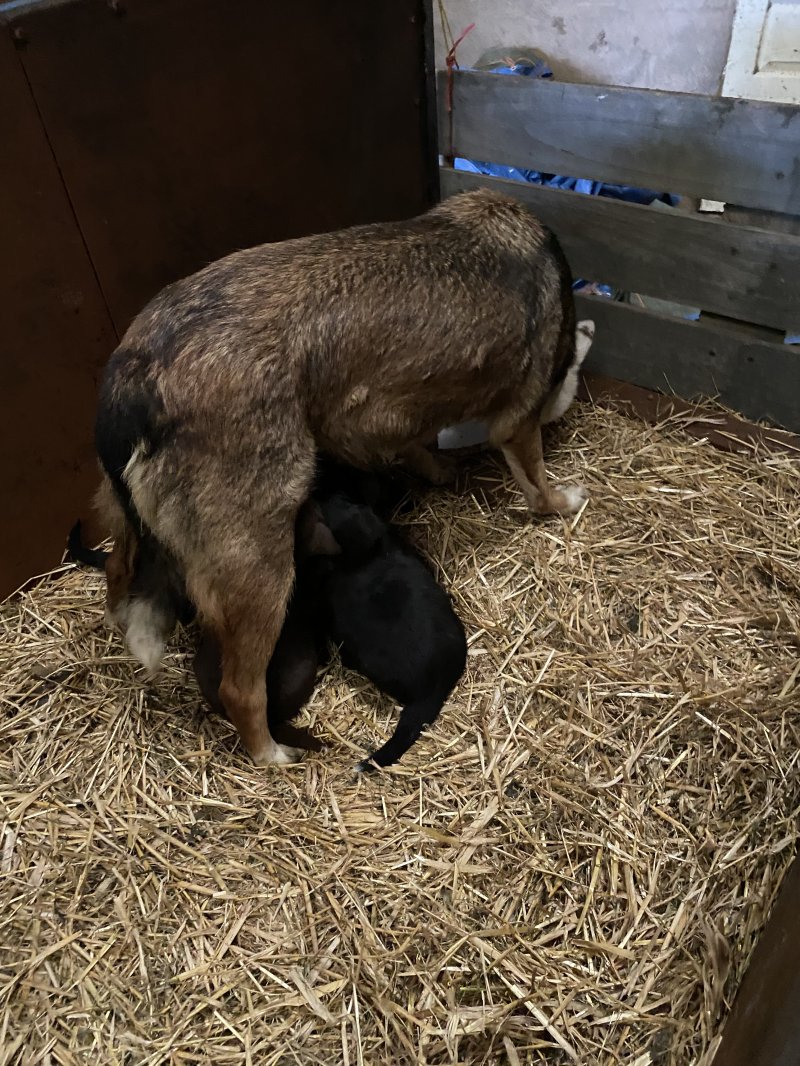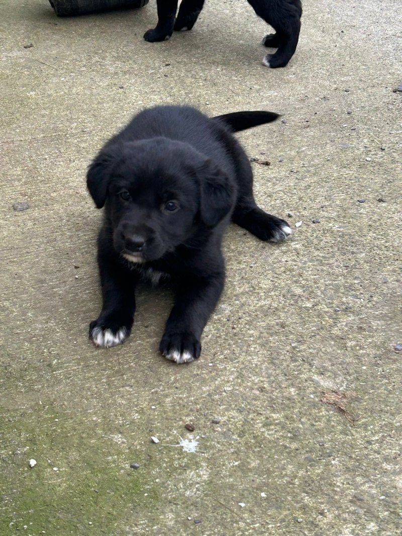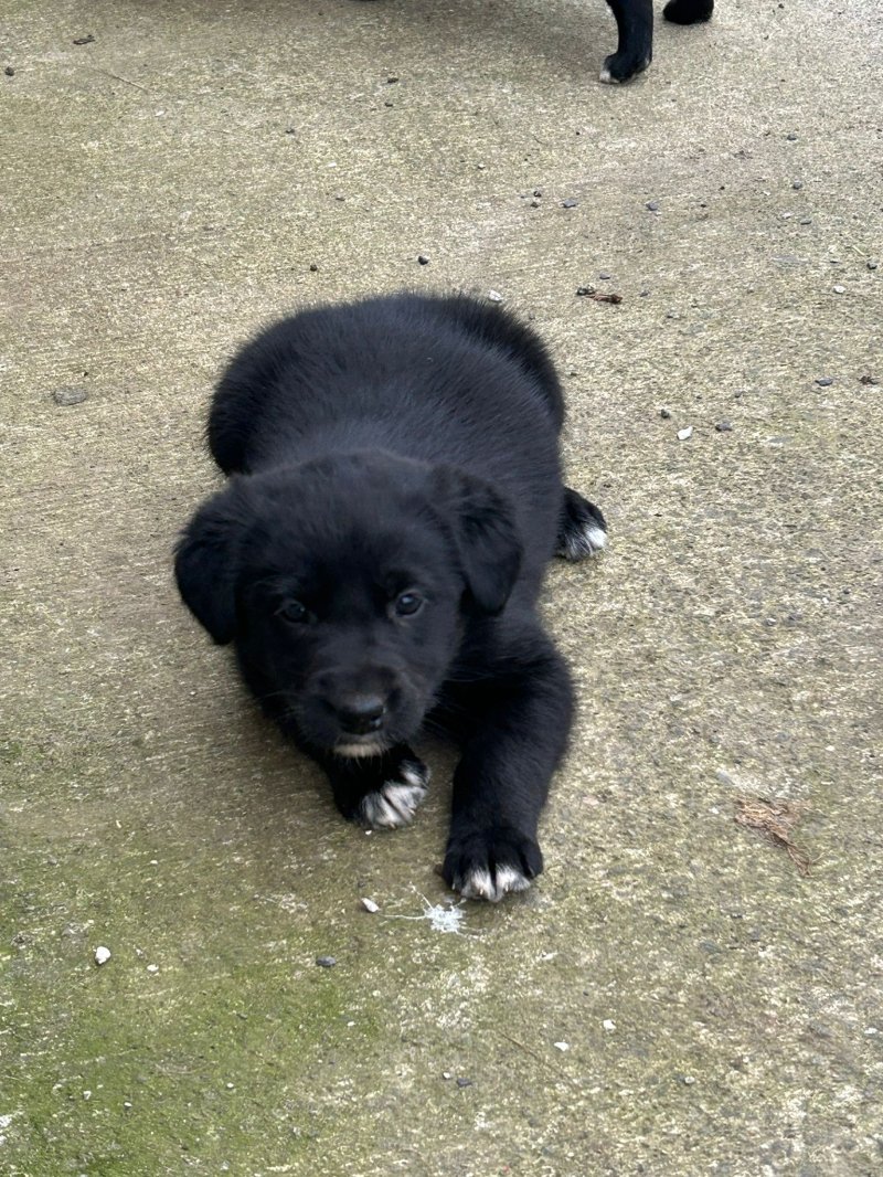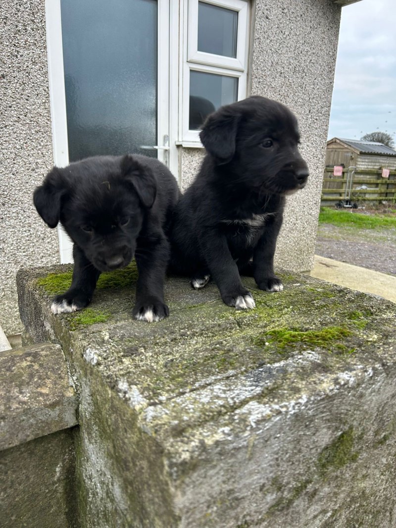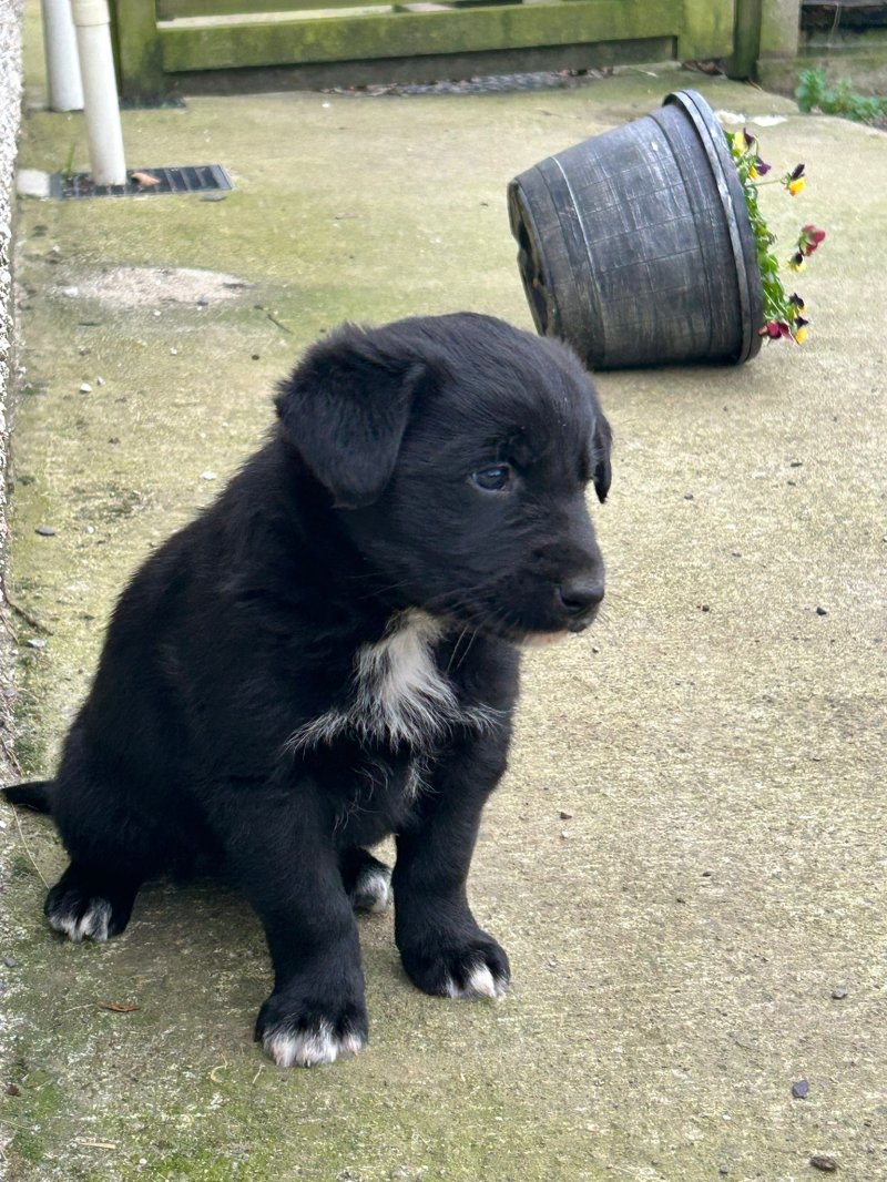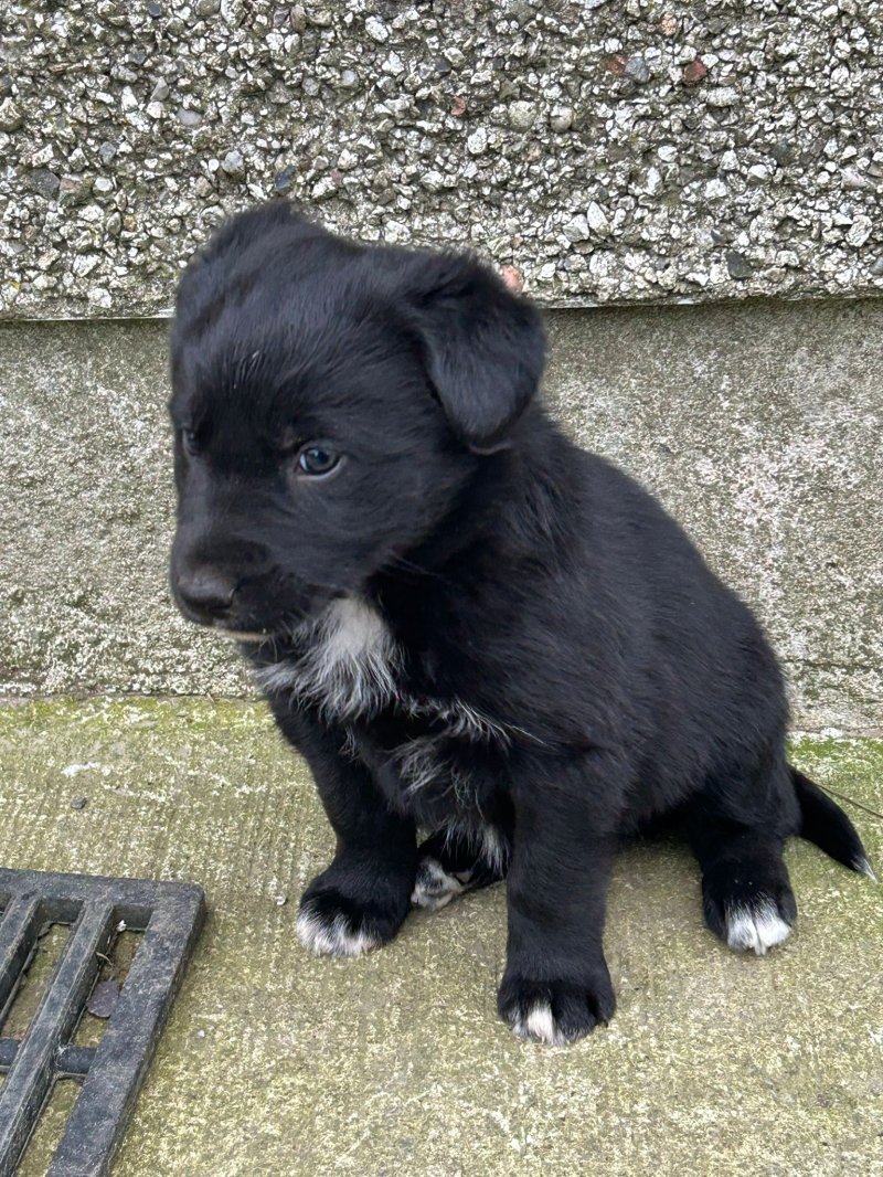 Our working Welsh collie has given birth to a litter of seven pupps, a mix of boys and girls, mother can be seen with the puppies, puppies are mostly black with white tips on tails and feet, some have a white chest