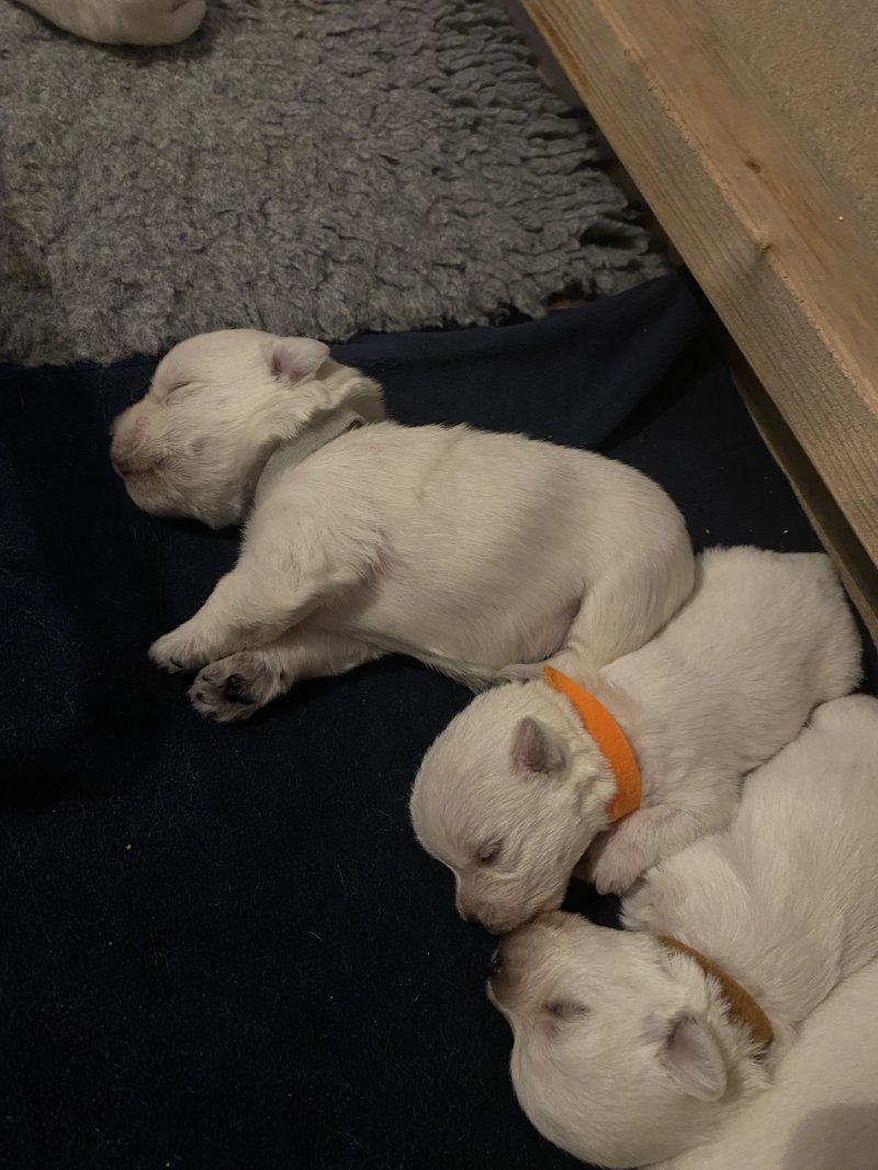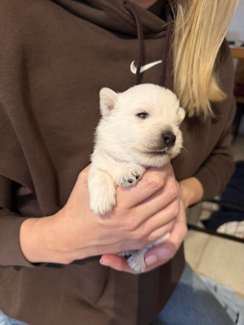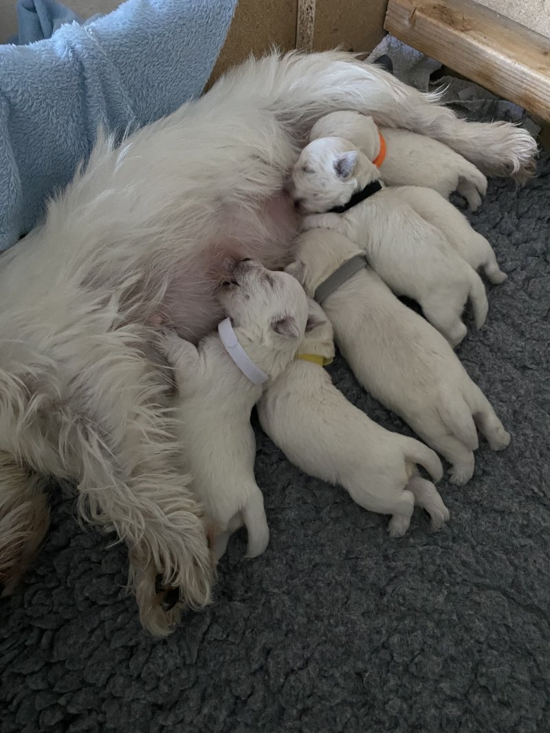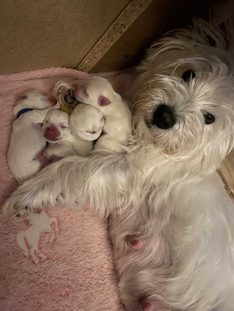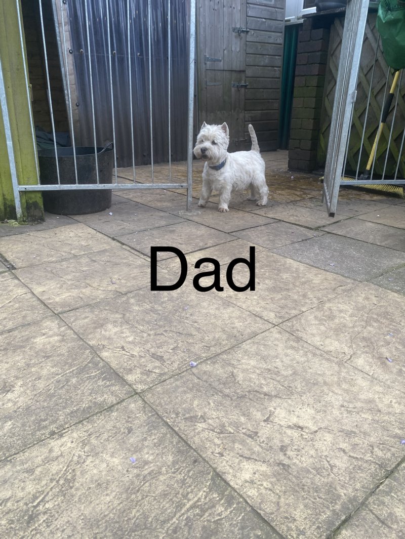 Mum (Bonnie) is a Beautiful 3 year old pure West Highland Terrier with her father also been in show and winning awards. Bonnie has a great, caring, calm personality and we couldn't have asked for a better natured dog. The father of the puppies is KC Registered and called the Mighty Warrior.