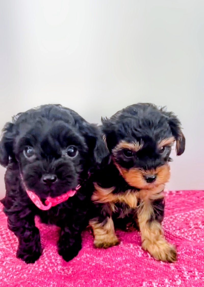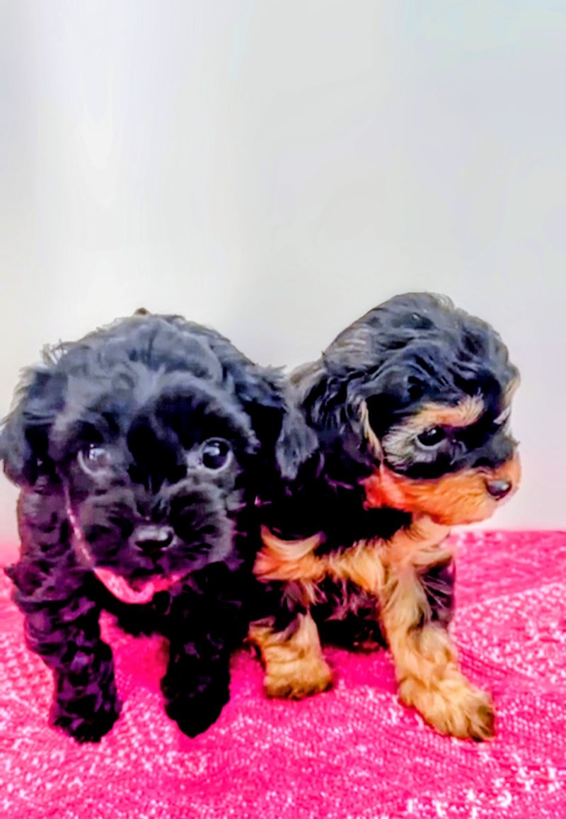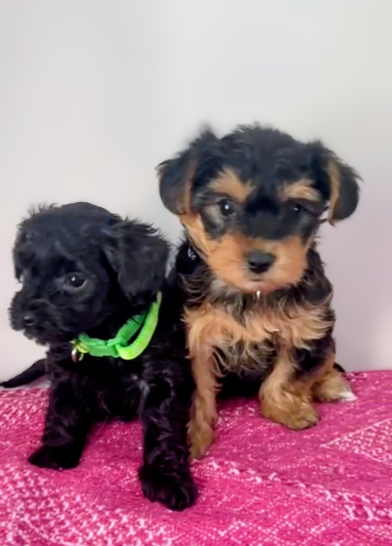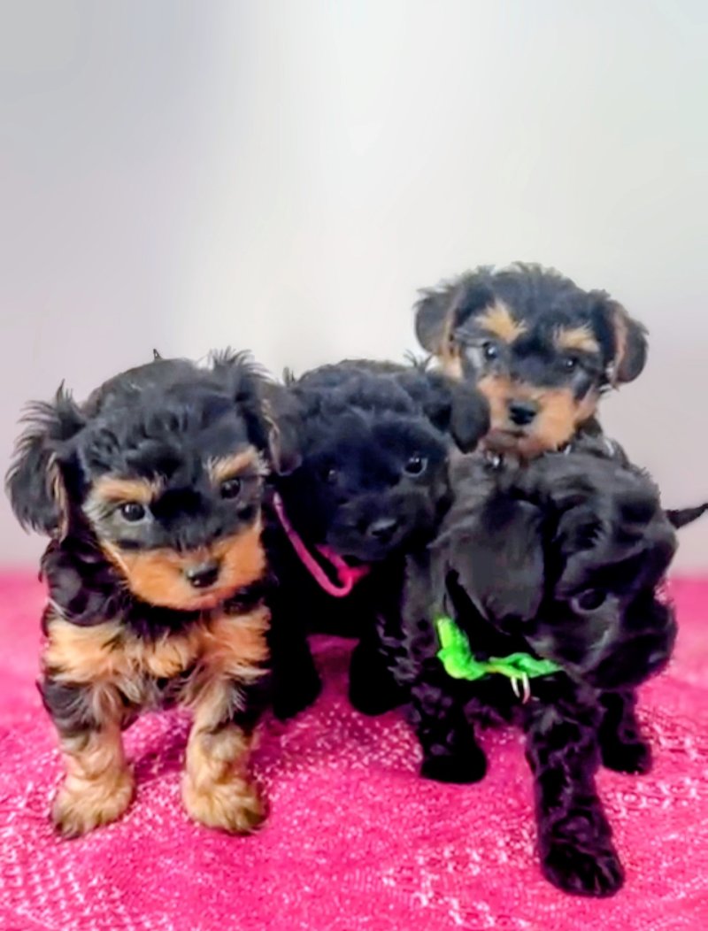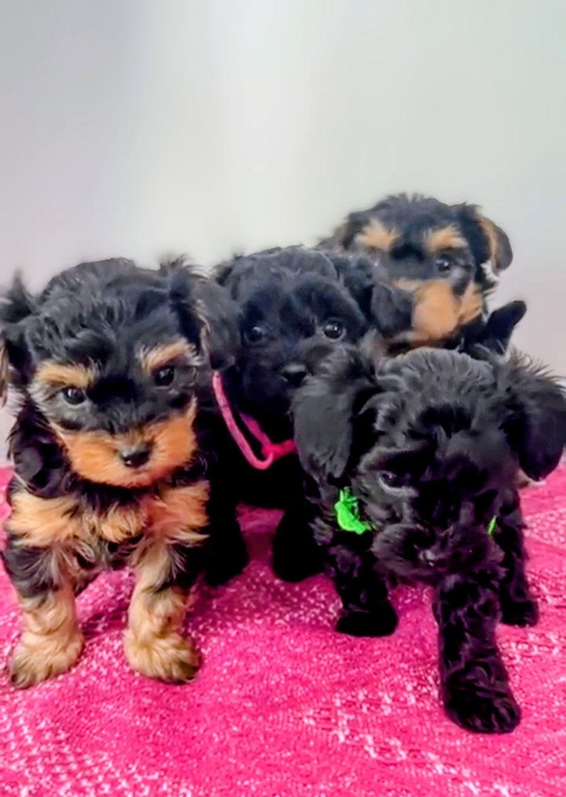 Four amazing yorkiepoo puppies who are now looking to explore their new adventures with their forever family.
