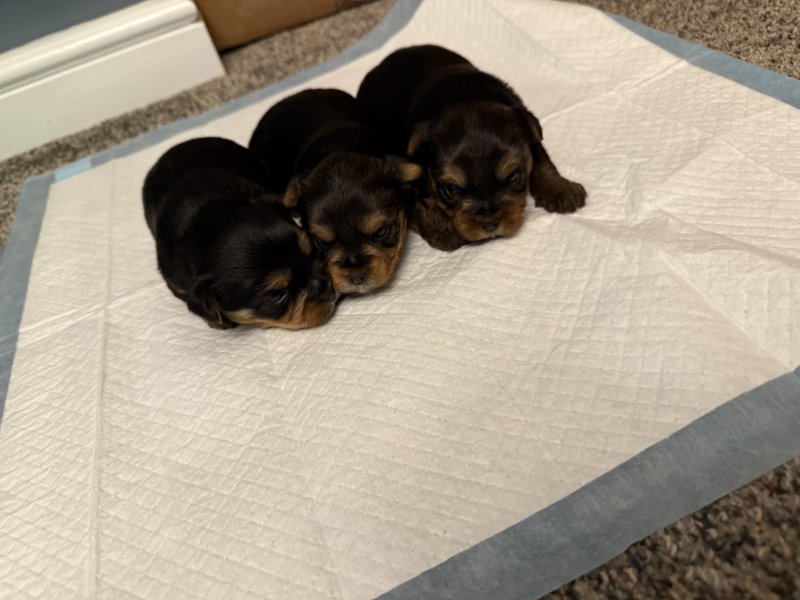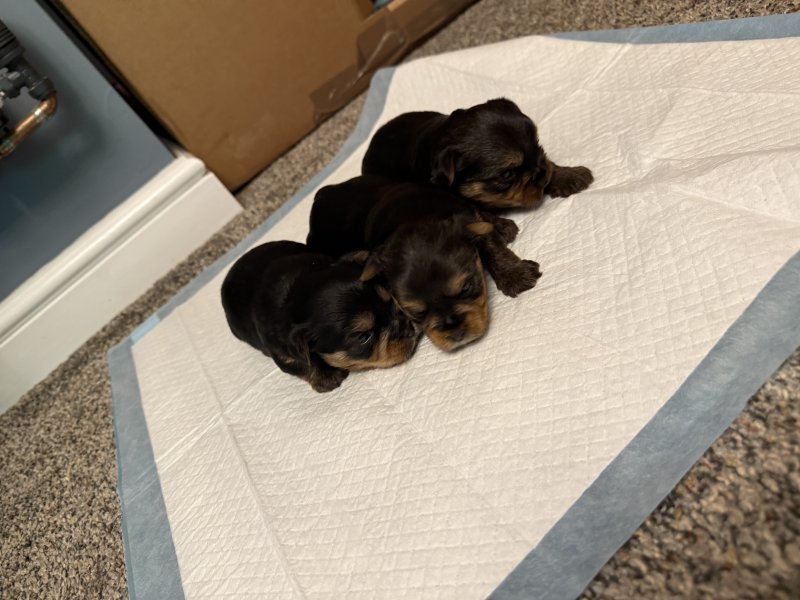 Ready in six weeks. We are looking for lovely homes for our Yorkshire Terrier Puppies. Two boys and a girl. Absolutely gorgeous pups, both Mum and Dad are lovely natured and playful. Dad is a pedigree of Polish decent and is registered equivalent to UK KC. Mum although pedigree is not registered but her sire is KC registered. It will be hard to let these darlings go. £250 non refundable deposit secures your pup. Will be ready in six weeks. Will be microchipped and first lot of vaccinations before they go.