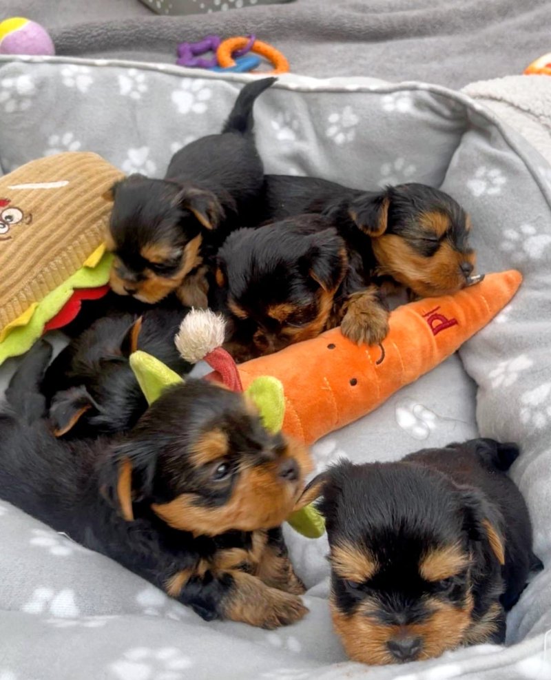 Our puppies will come with a blanket with Mum's scent, and they will also go to their new family with a goody bag containing current food, treats, poo bags, a soft toy, and a chew toy. They will have completed their full 8-week worming schedule and will be health-checked by our friendly vets. A copy of the health certificate will be provided. The puppies will also be microchipped. A contract of sale will be given to ensure a smooth transfer of ownership.