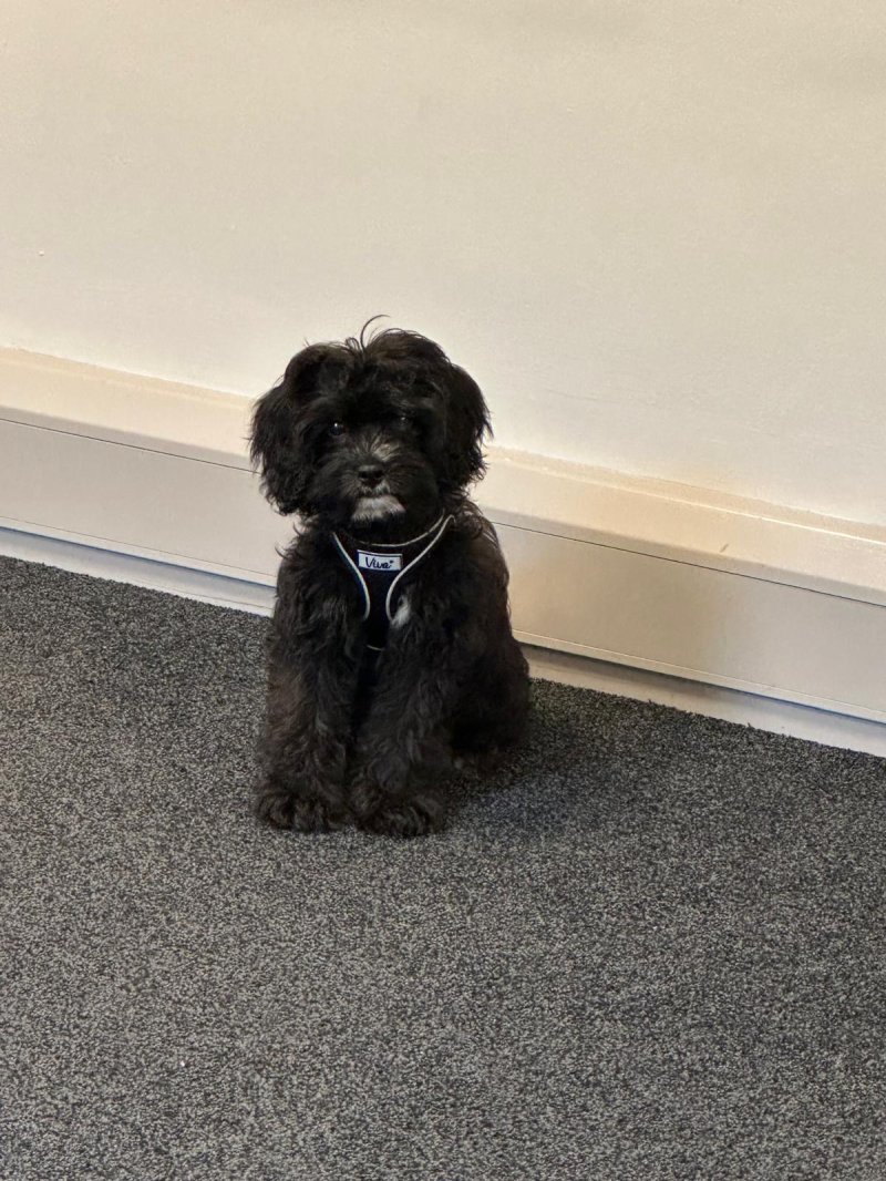 He is still trying to chew your fingers so lots of toys are needed - he runs off leads and returns when called in open spaces - he still jumps up at people but he is learning. Rufus would cuddle you all day if allowed. He is gorgeous and we are really sad to let him go, but he deserves a family that can be with him all the time.