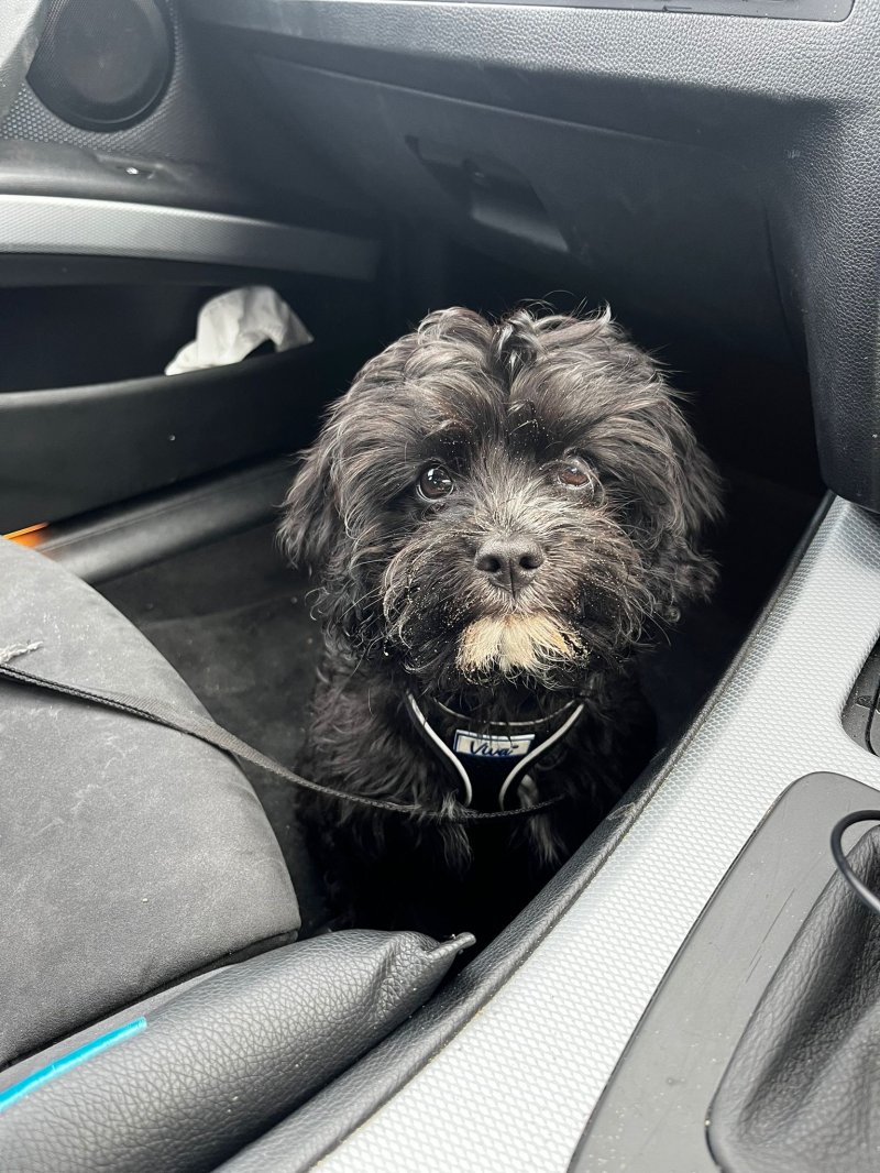 He is toilet trained to go outside and barks to alert you when he needs to go.