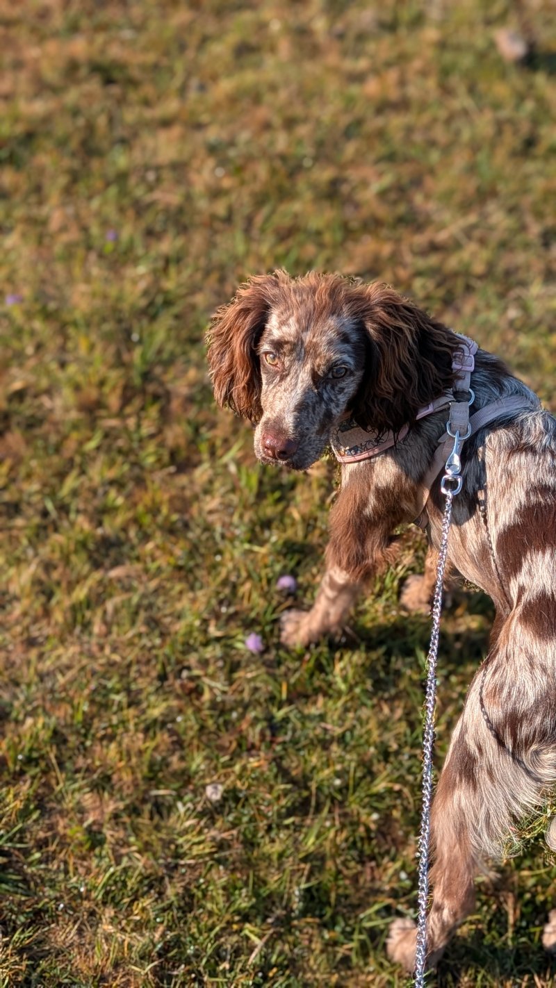 Nova is a truly beautiful cocker spaniel of 10 months old. She's amazing around children (we have a 4 and 2 year old). It's only due to a change in work commitments that we've realised we haven't got the time for her that she needs. She is basic house trained and knows to go to the toilet outside. We walk her and she can go off lead but isn't always the best listener at coming back. However due to her age she is completely trainable.