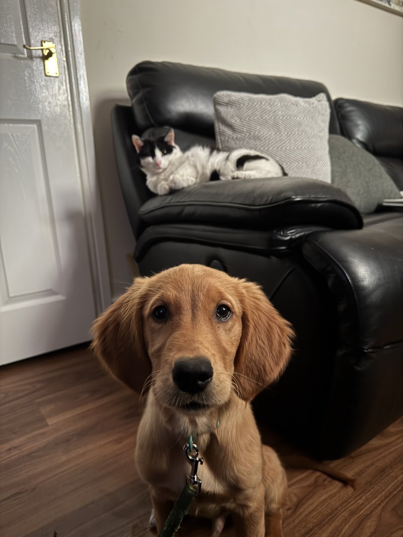 Winston is a loving, intelligent, and gentle-natured red-coated Golden Retriever, born 12 May 2025. He’s been raised with great care, consistency, and love, and has already developed a brilliant foundation for his future family to build on. He loves everyone he meets and loves children. He's been raised around a cat and they get on well.
