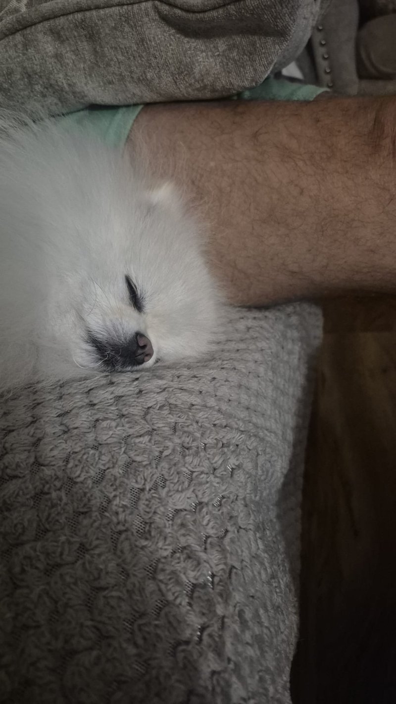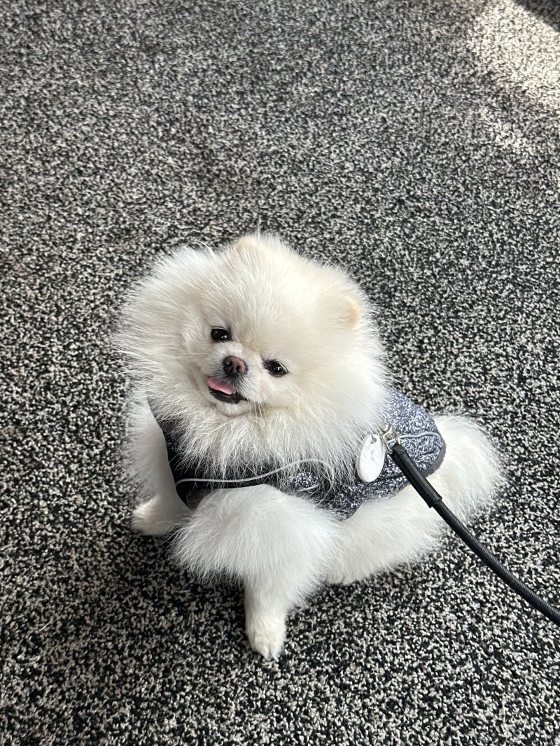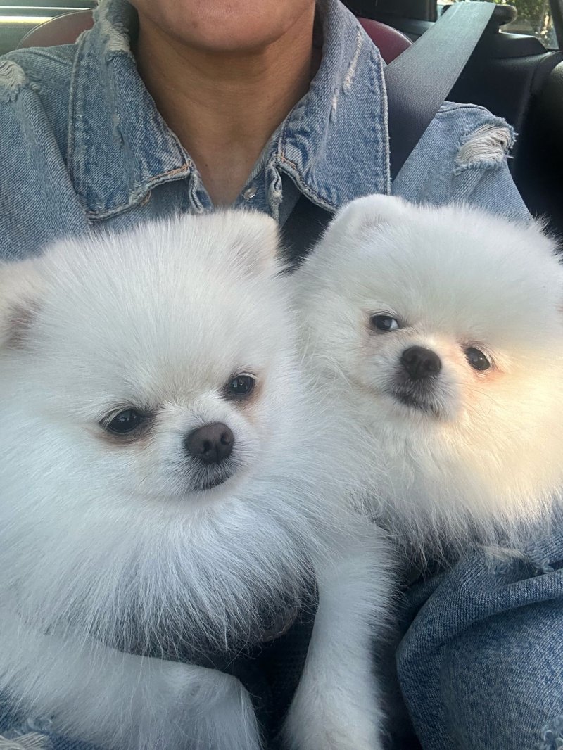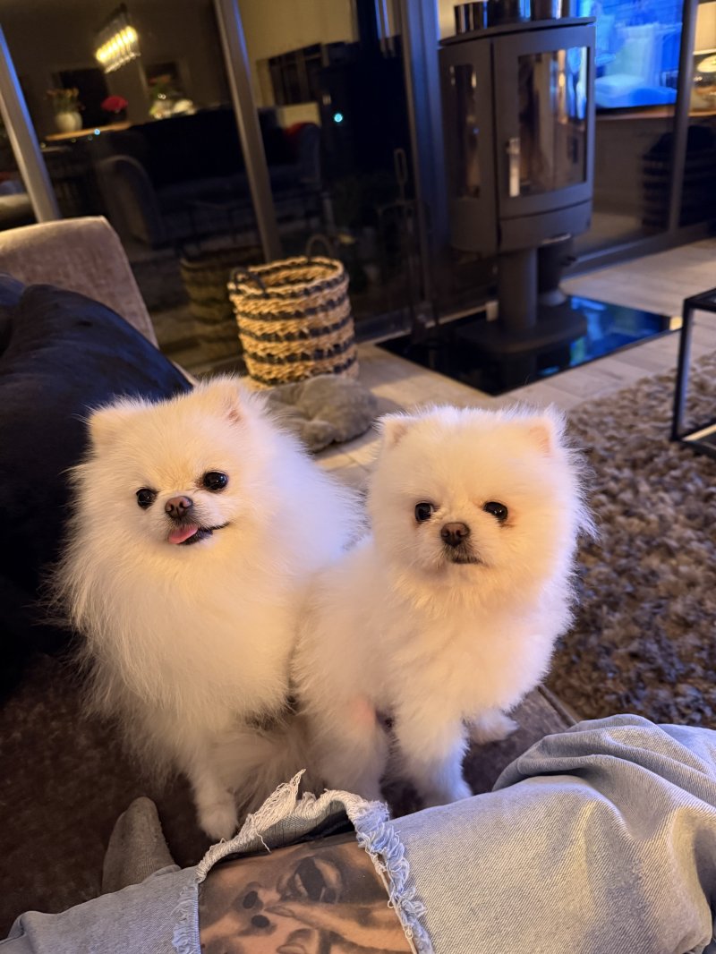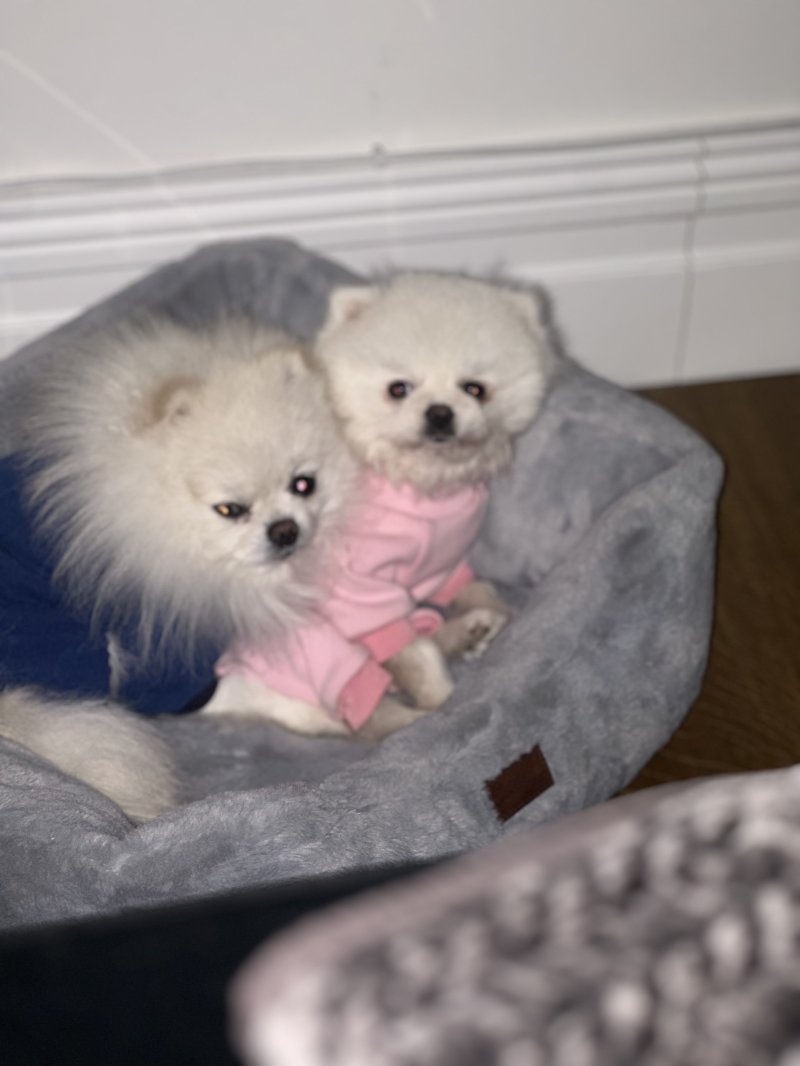 Pure white teddy bear face tiny Pomeranian boy 2.5kg girl 1.5 kg fully grown now 2yrs old not related to each other so can start breeding.